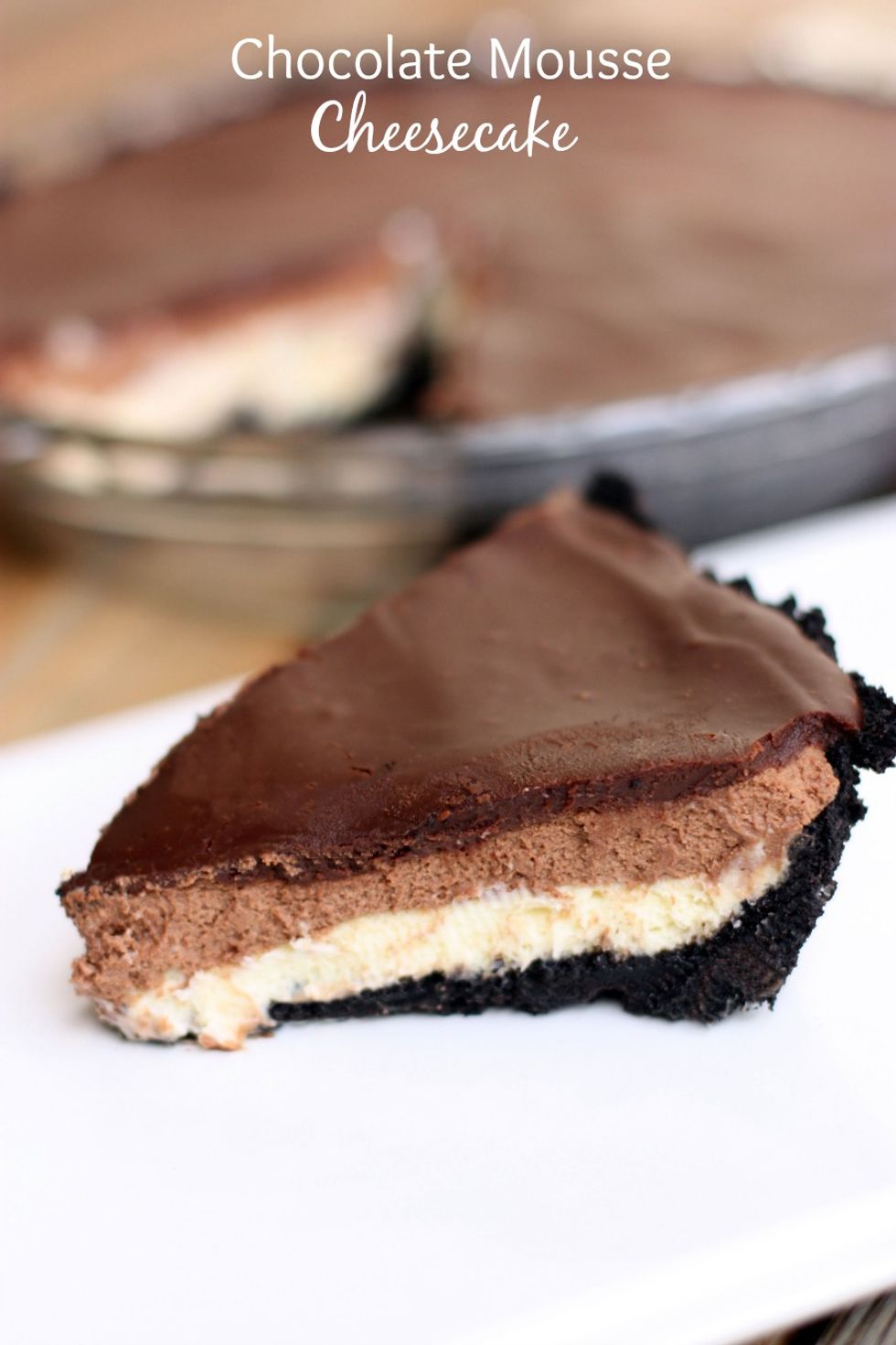 Oreo crusted cheesecake topped with a layer of chocolate mousse and a layer of chocolate ganache-- It’s rich, decadent, and insanely delicious!