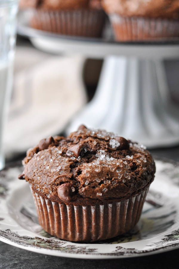 These bakery-style Chocolate Muffins are loaded with chocolate chips for a gooey, fudgy breakfast treat or a sweet afternoon snack. Made from scratch with cocoa powder and chocolate chips, the easy chocolate chip muffin recipe comes together in about 10 minutes. Don't miss all of the tips and tricks for perfectly raised muffin tops and soft, fluffy insides!