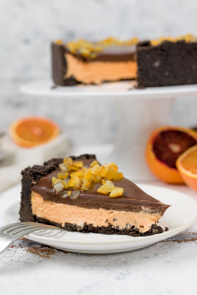 This Chocolate Orange No-Bake Cheesecake is rich, creamy and delicious! Made with an Oreo crust, and topped with chocolate ganache!
