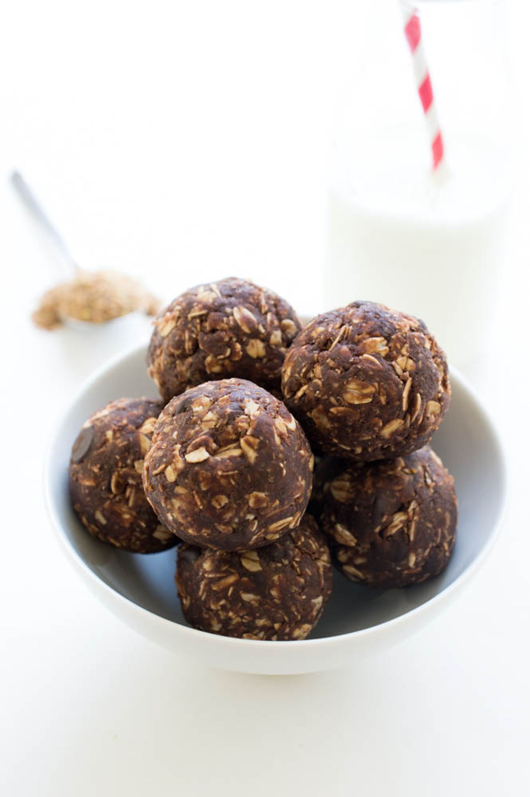 No Bake Chocolate Peanut Butter Energy Bites. Loaded with old fashioned oats, peanut butter, protein powder and flax seed.