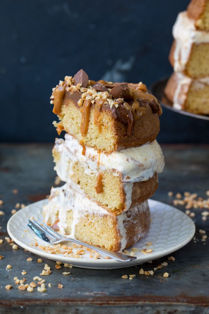Chocolate Peanut Butter Ice Cream Cake with Salted Caramel - this three layer cake is an easy crowd-pleaser. A great Summer dessert!