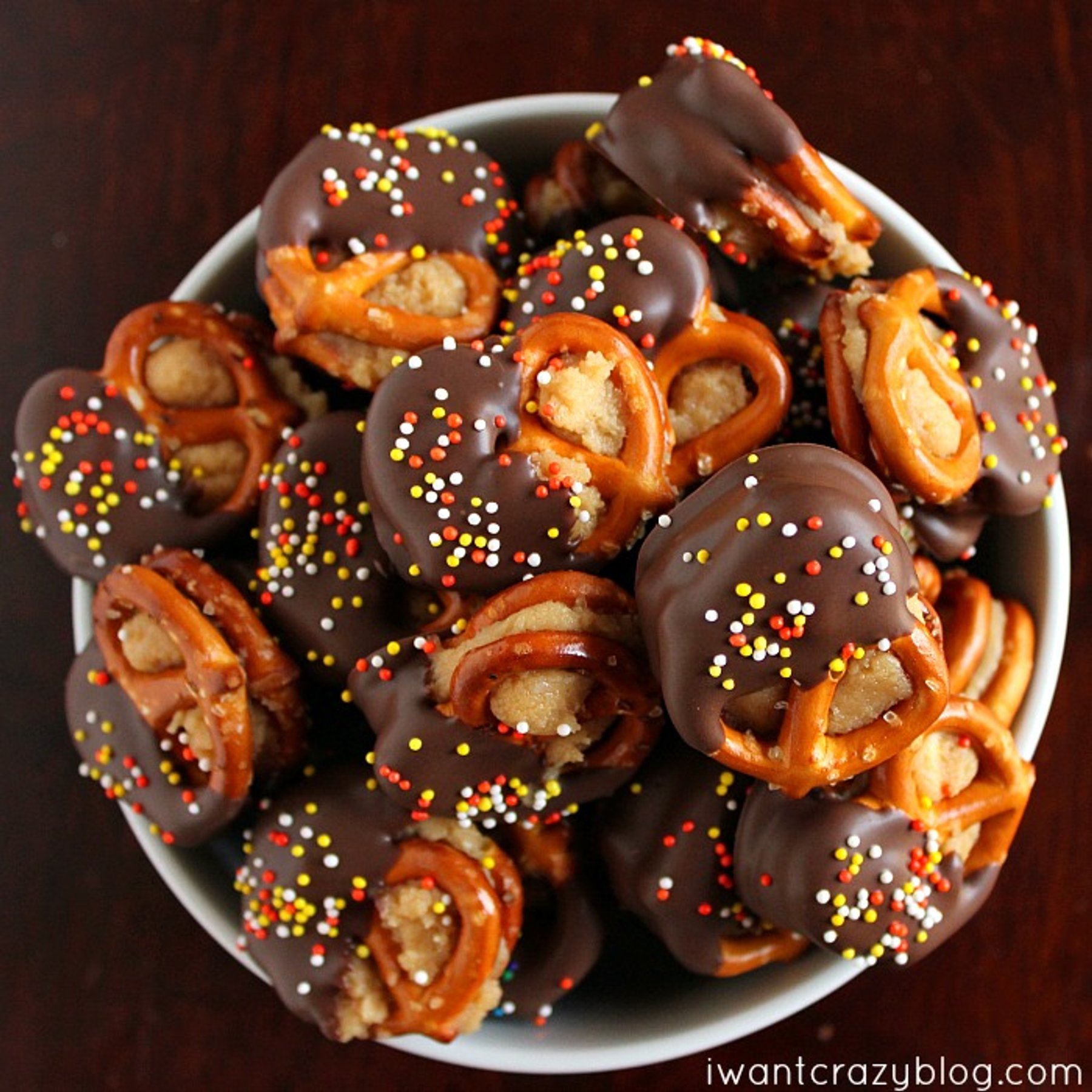 Easy, no-bake treats. Creamy peanut butter filling sandwiched between two pretzels and dipped in chocolate!