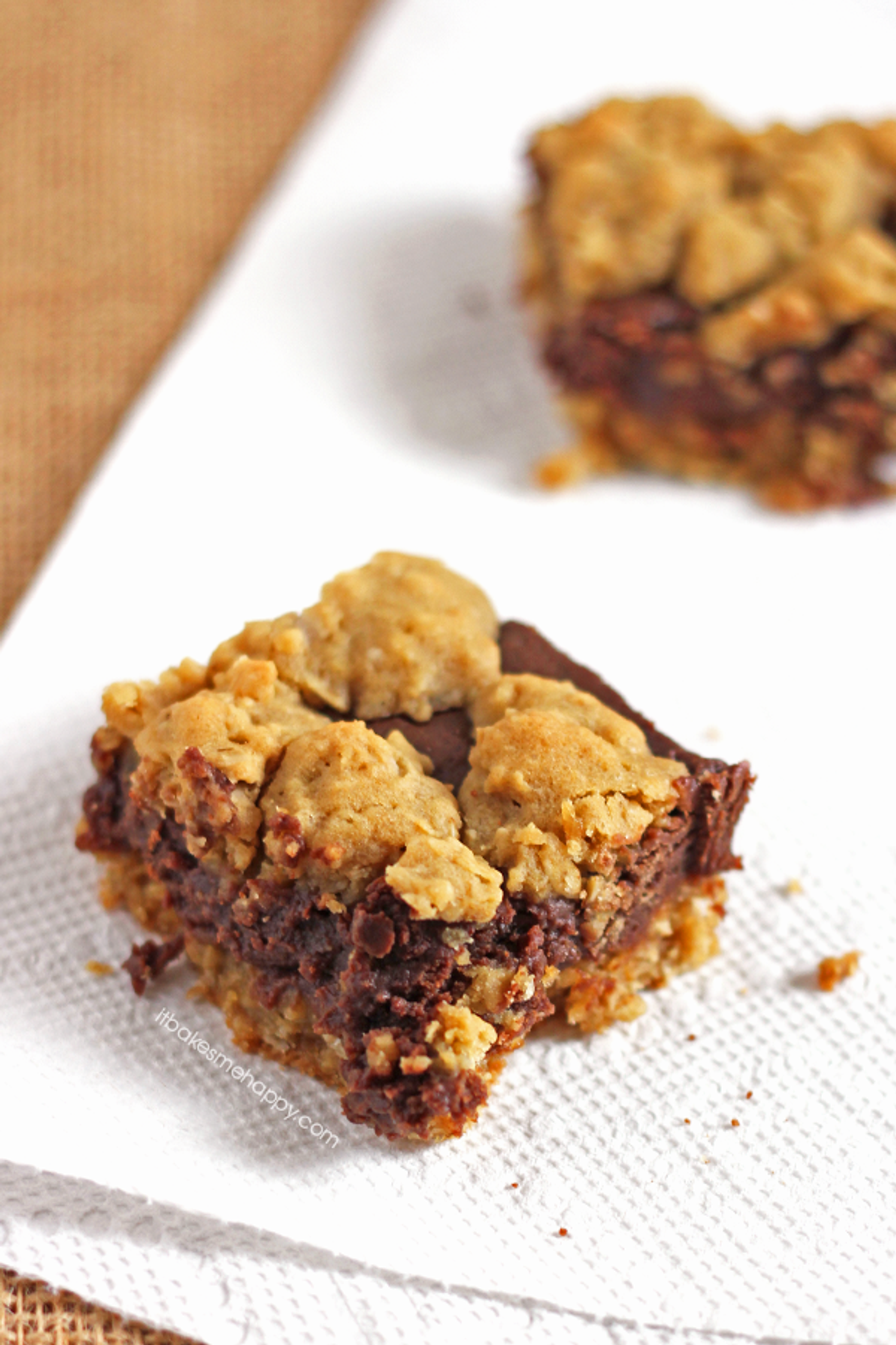 Preheat your oven to 350ยบ. In the bowl of your stand mixer beat the butter and 1/4 c peanut butter on medium speed for 30 seconds. Add the brown sugar and beat until well mixed. Beat in eggs one at a time...