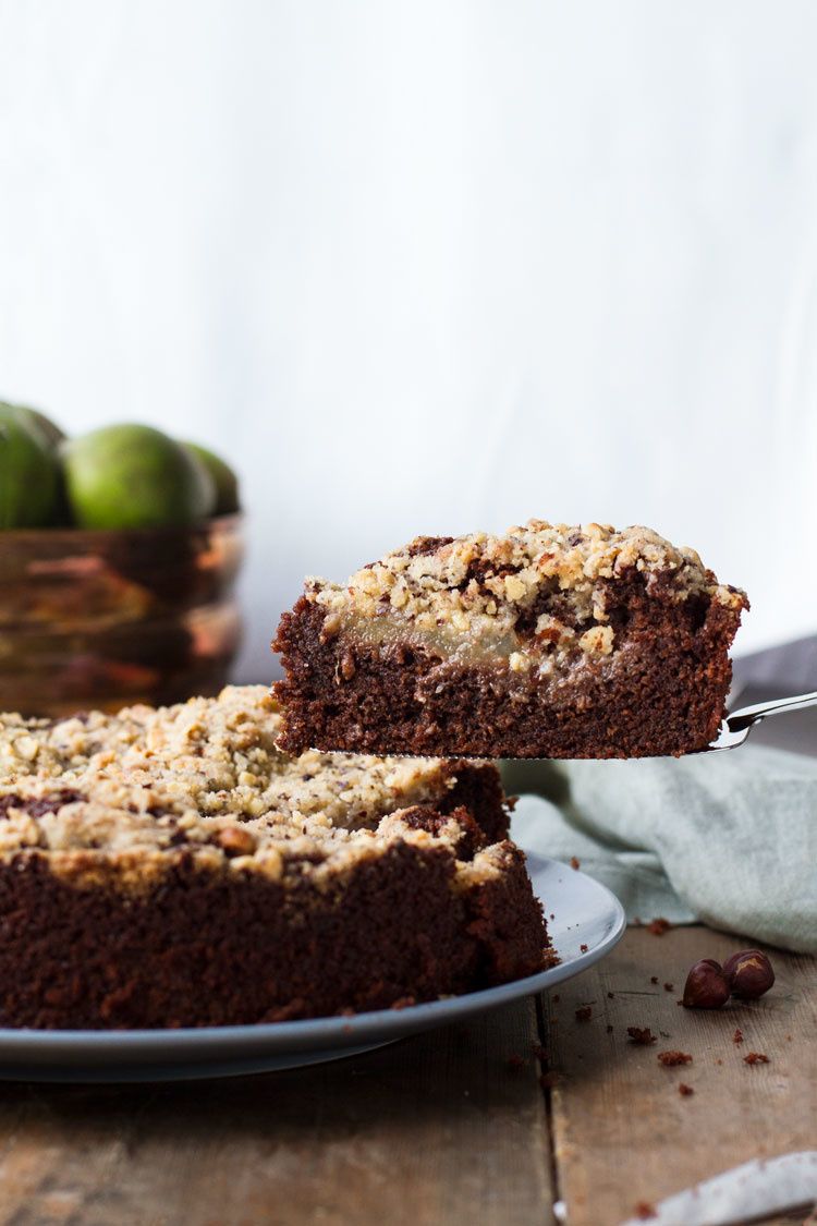 Chocolate Pear Cake with Hazelnut Crumb Topping