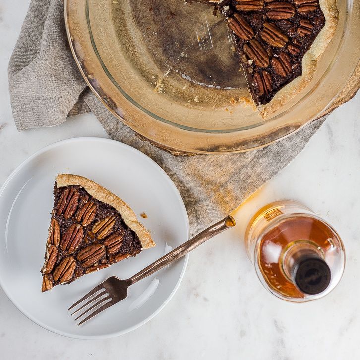 The filling in this chocolate pecan pie recipe gets a little extra kick from a shot of rum. The result is a rich, chocolatey, and boozy dessert, with plenty of crunch from the pecans.