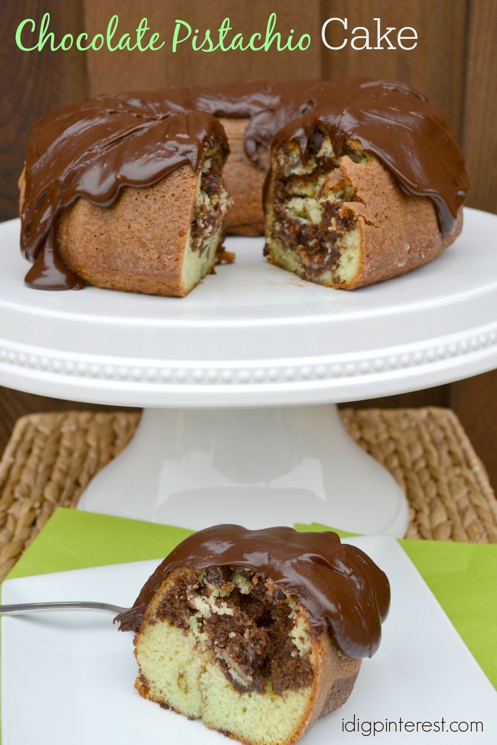 This Pistachio Cake marbled with chocolate and lathered in chocolate marshmallow frosting is a delectable dessert!