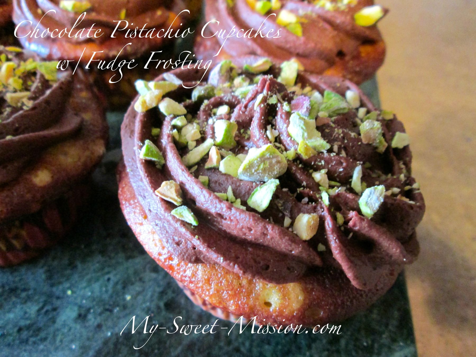 Chocolate Pistachio Cupcakes w/Fudge Frosting