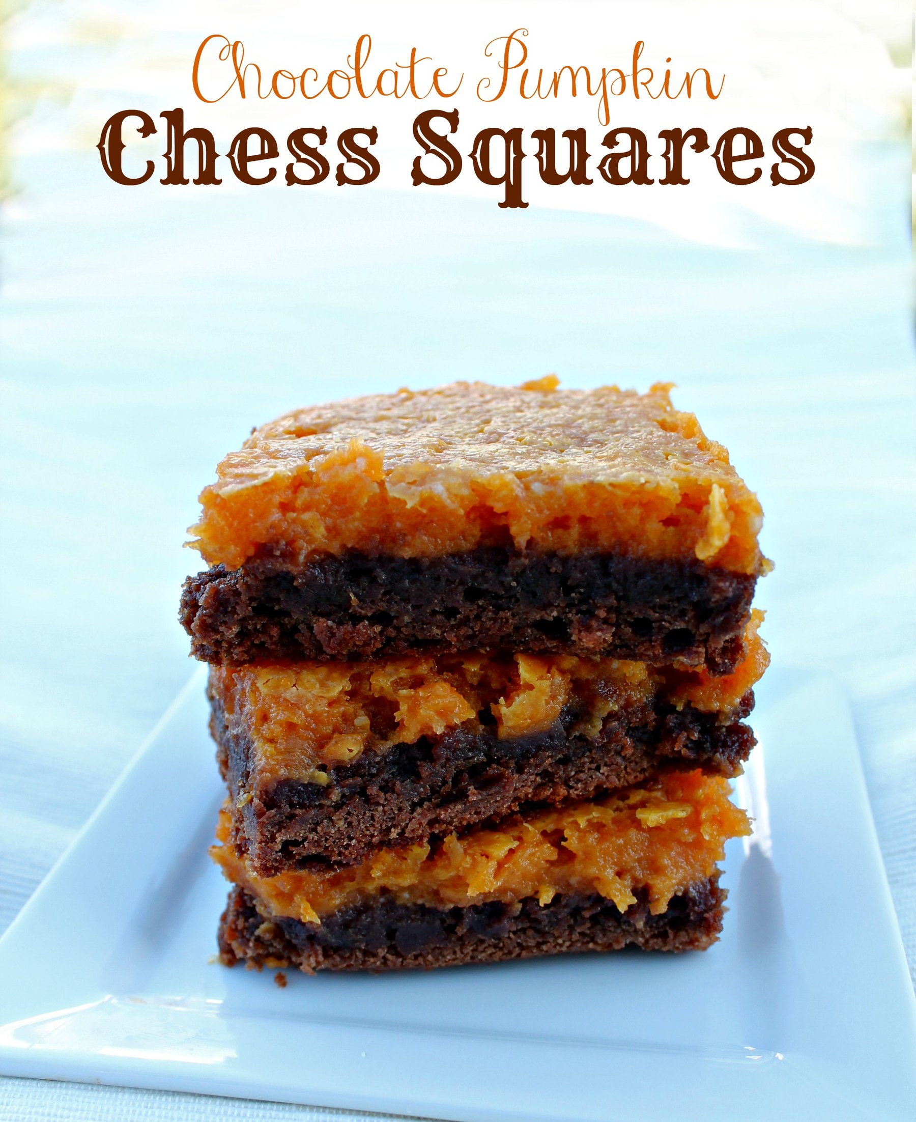 One of my all-time favorite recipes on the blog are these Chess Squares. Silly, right? They are super easy to make - but just so delicious! I seriously could sit down and eat a whole pan. (Yes, I am totally speaking from experience.) I have been craving chocolate-y pumpkin flavors all week, so I decided to make a "holiday" version of the Cheesecake Chess Squares. Turns out, they are almost better than the original!