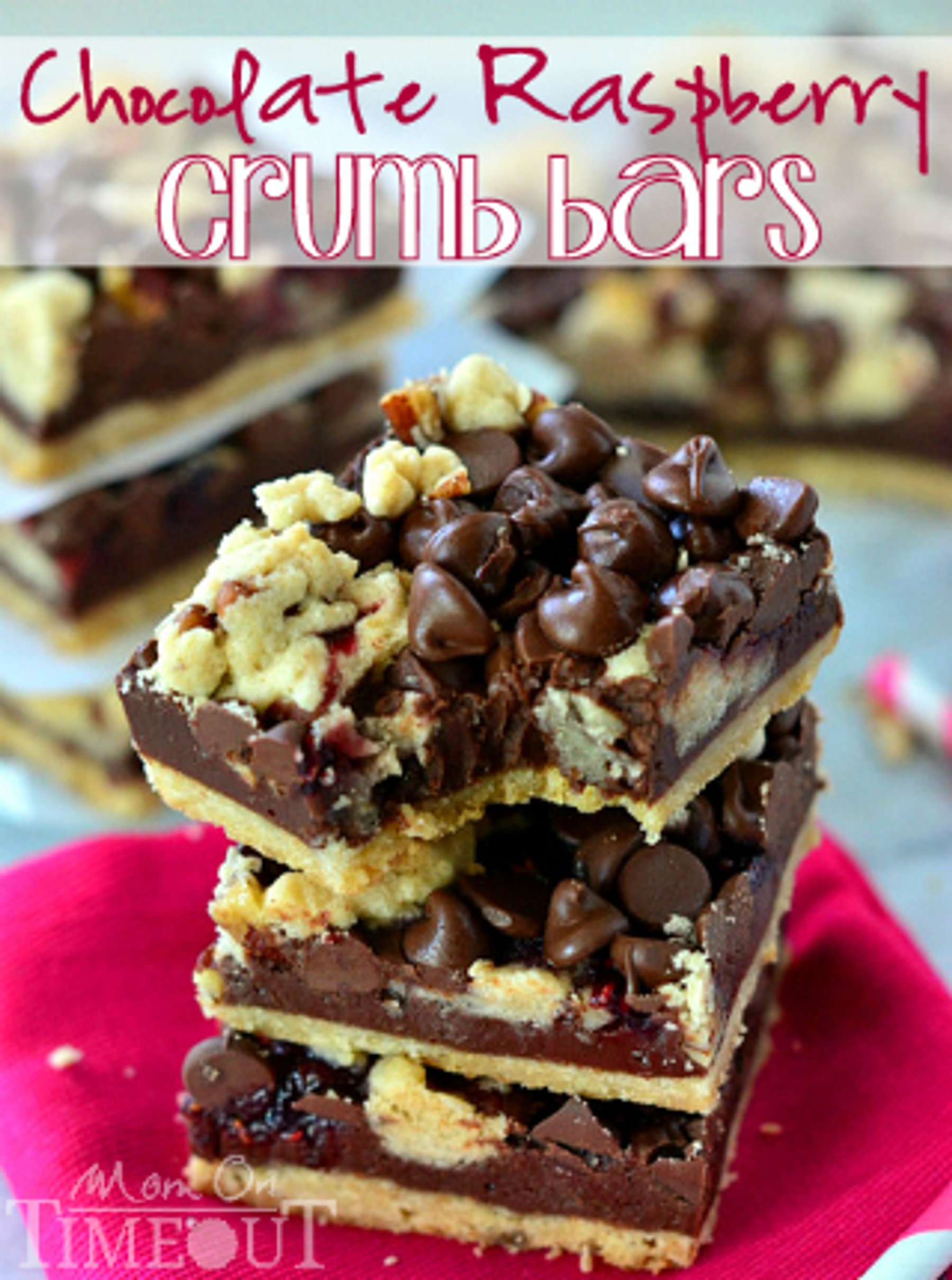 Intense dark chocolate fudge layered with raspberry and a brown sugar crust. These bars are the definition of decadent.