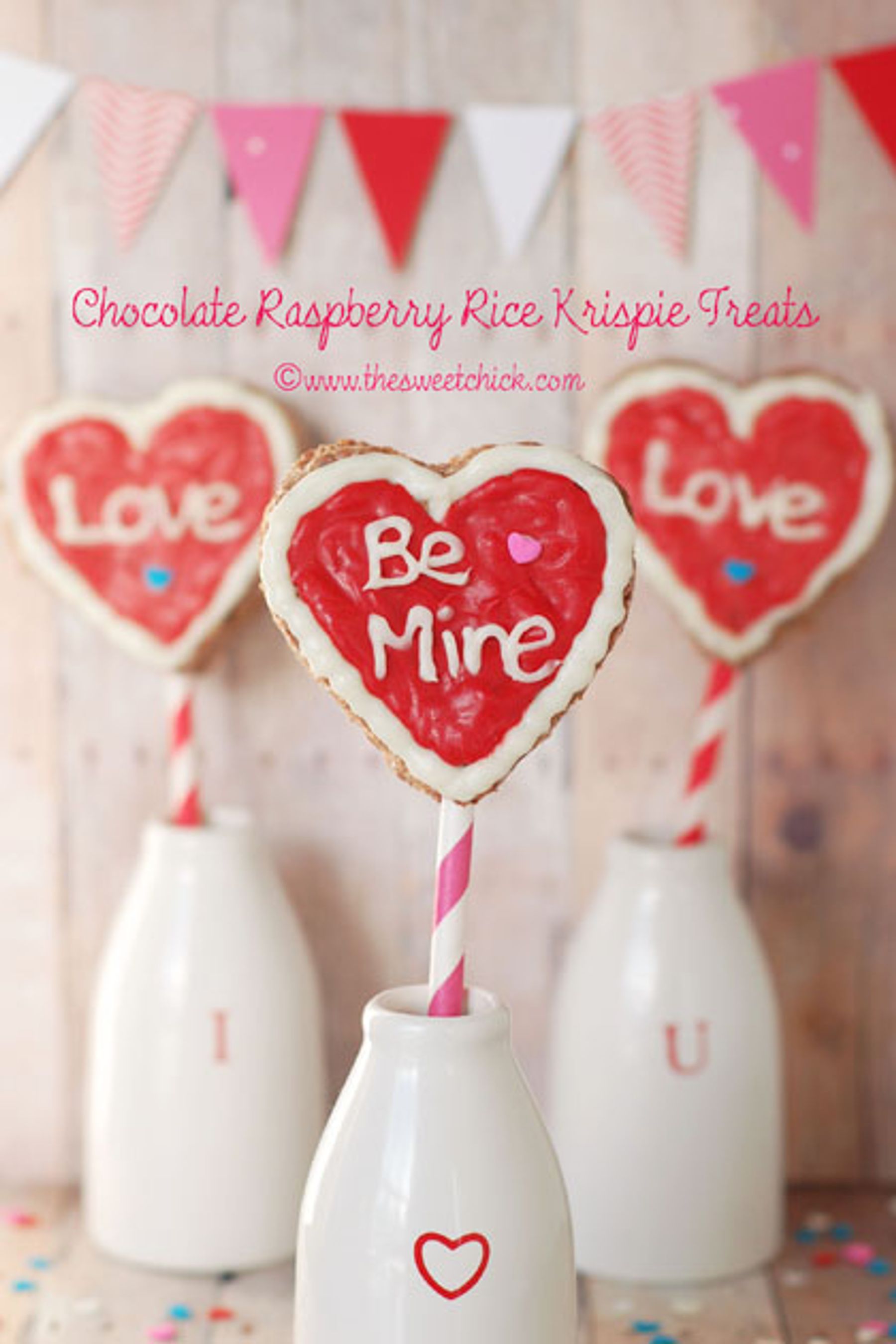 Rice Krispie treats made with hot chocolate mix and Hershey's Raspberry Hugs