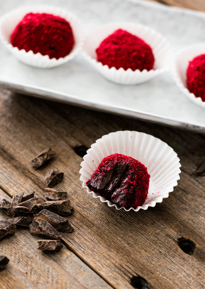 These beautiful, vibrant and oh so chocolatey truffles are perfect for any special occasion, especially Valentines Day. They are pretty healthy to boot :)