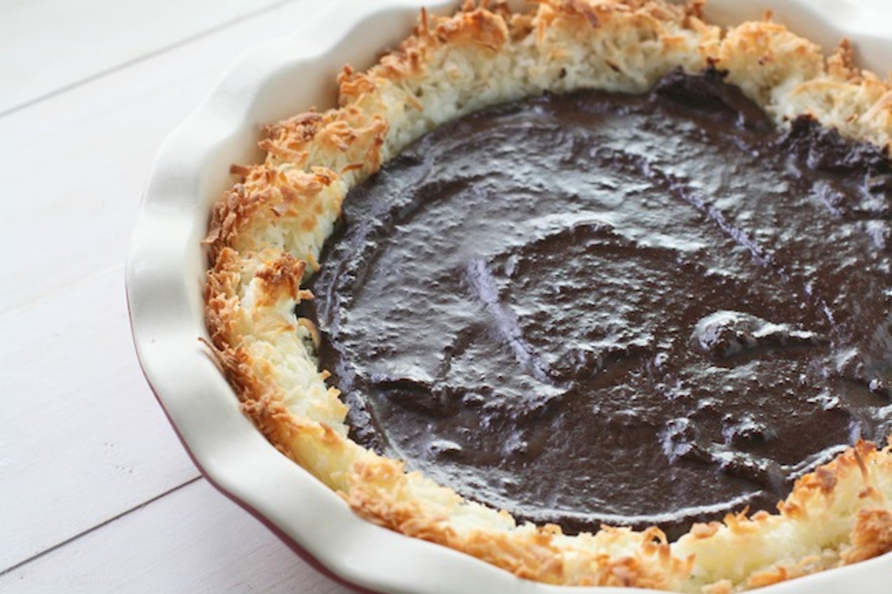 Chocolate Salted Caramel Pie with Toasted Coconut Crust