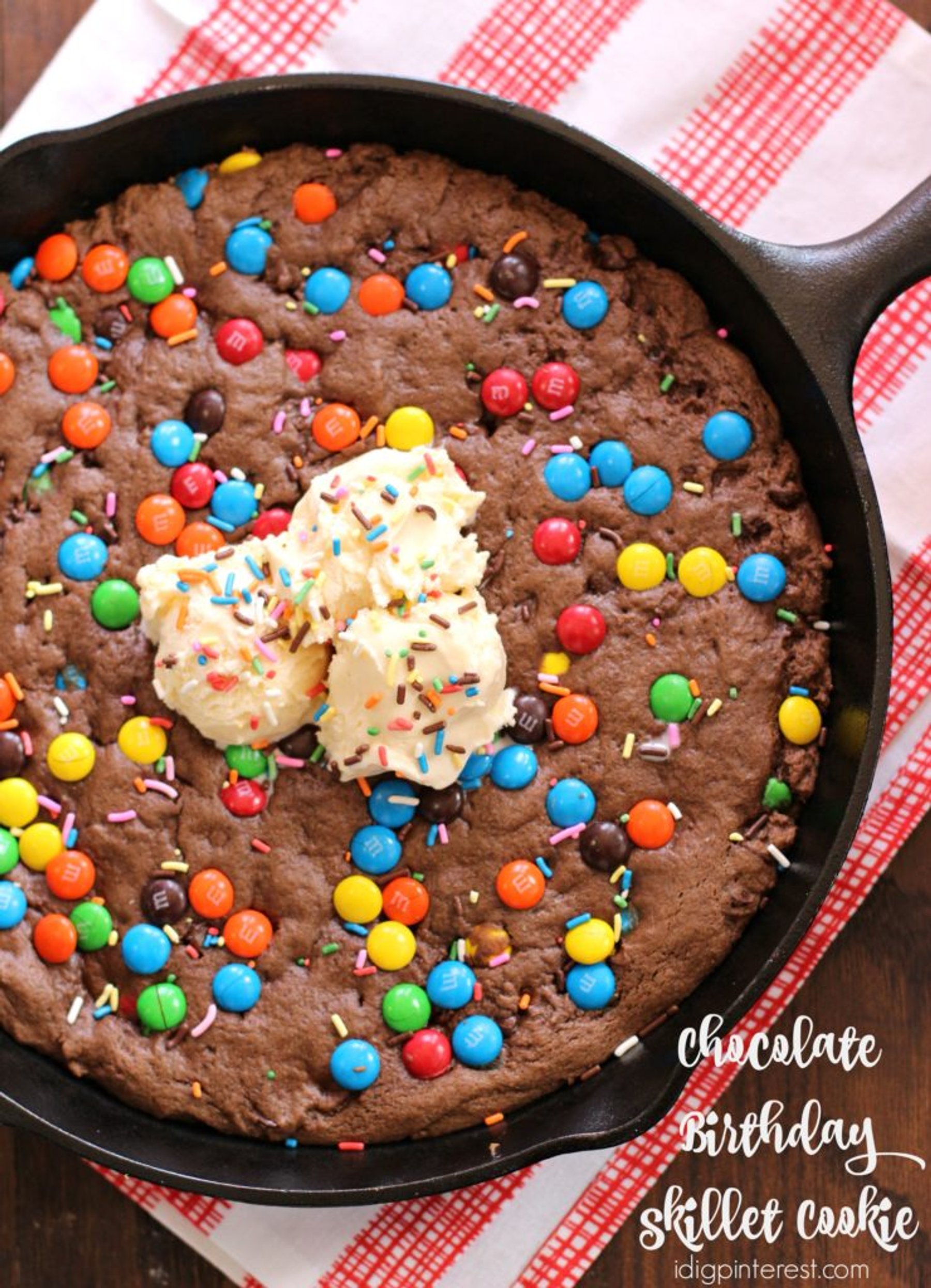 Birthdays are cause to celebrate in a big way with yummy, indulgent desserts, and it certainly wouldn’t be a party without this colorful Chocolate Birthday Skillet Cookie! It’s loaded with…you probably already guessed…chocolate! It’s gooey, fudgey, and melt-in-your-mouth incredible!