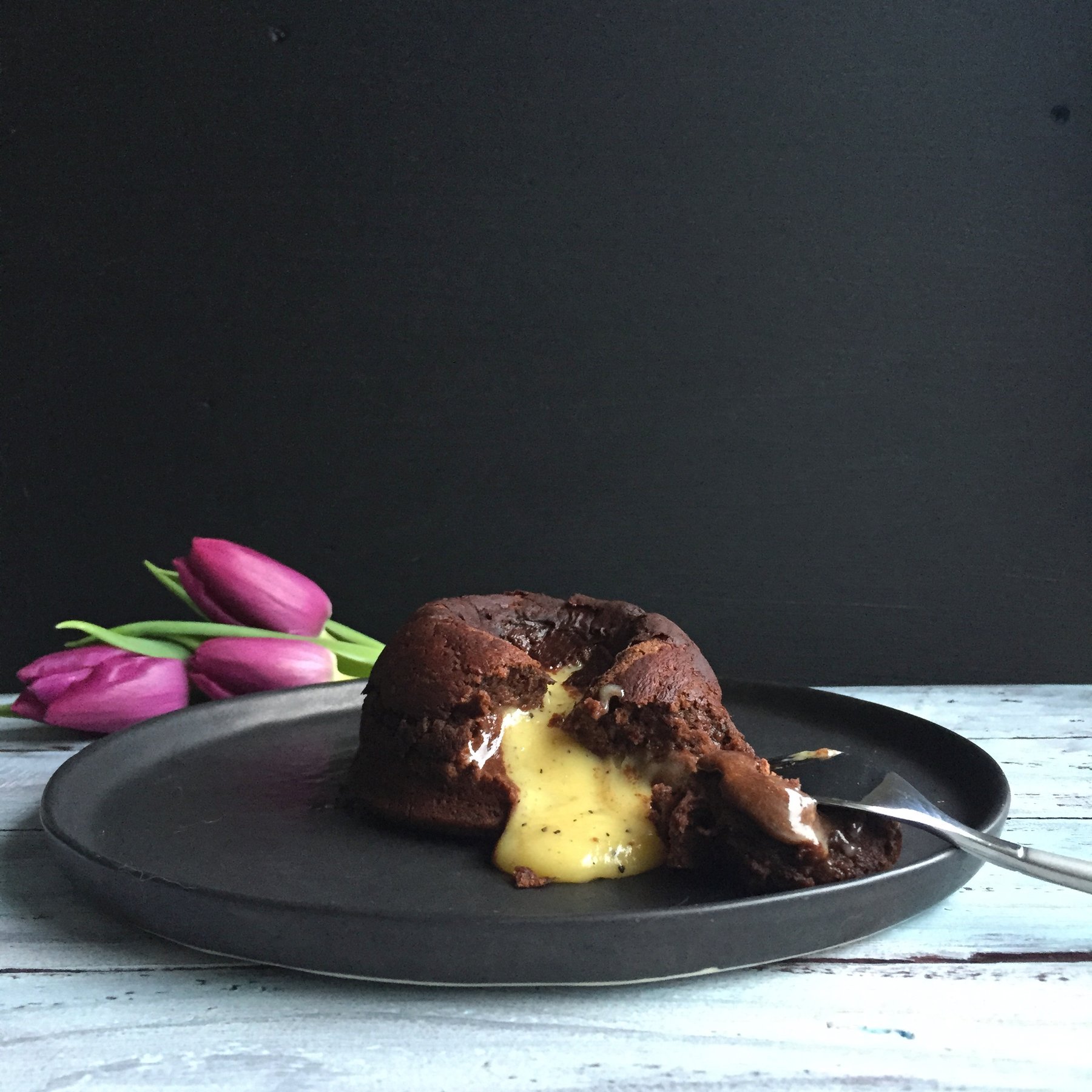 Chocolate Soufflé with a Passion Fruit – White Chocolate Ganache center