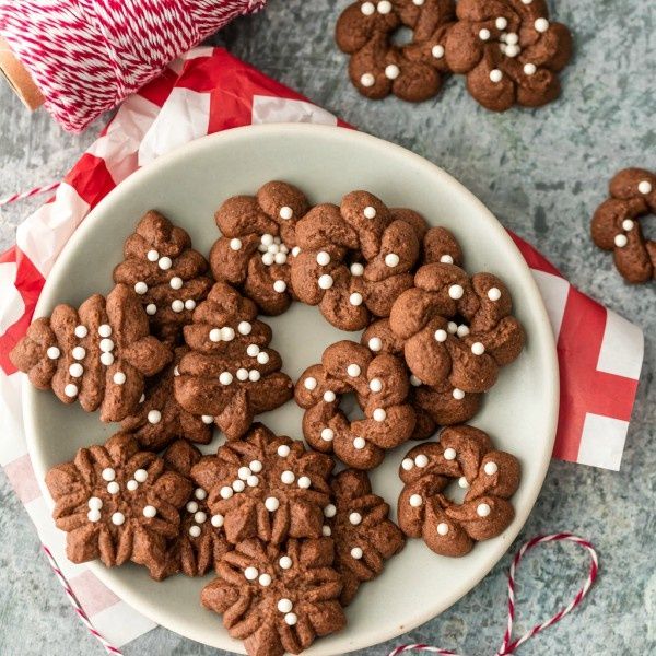 You'll never guess that these CHOCOLATE SPRITZ COOKIES are GLUTEN FREE! Utterly delicious, like little heavenly brownie bites. The ultimate EASY Christmas cookie recipe!