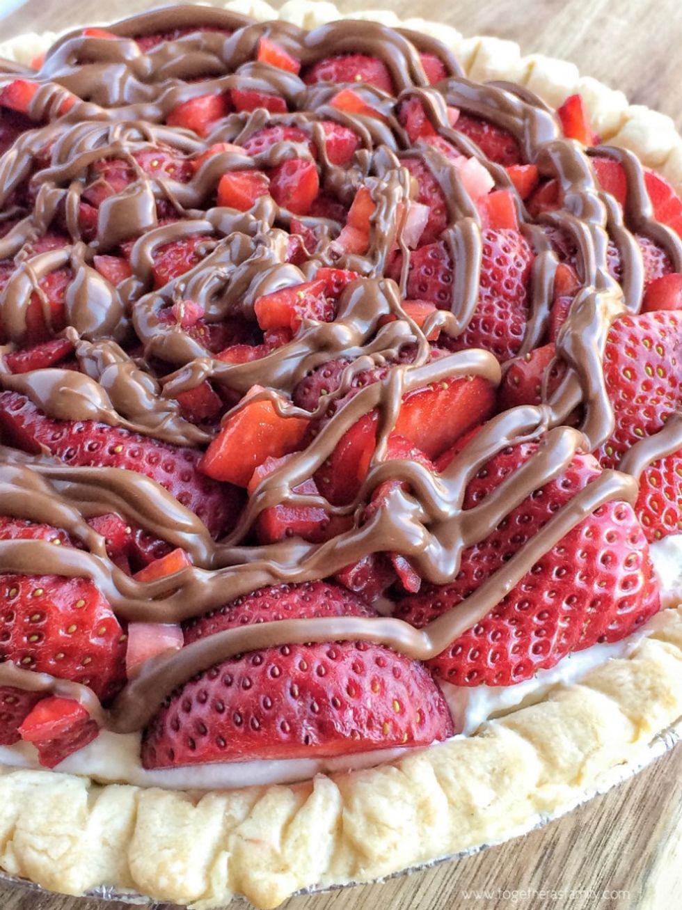 This chocolate strawberry cream pie is a showstopper dessert that no one would believe how easy it is! A simple, 6 ingredient cream pie inside a store-bought cooked crust, and piled high with juicy red strawberries with a milk chocolate drizzle. This pie is the best!