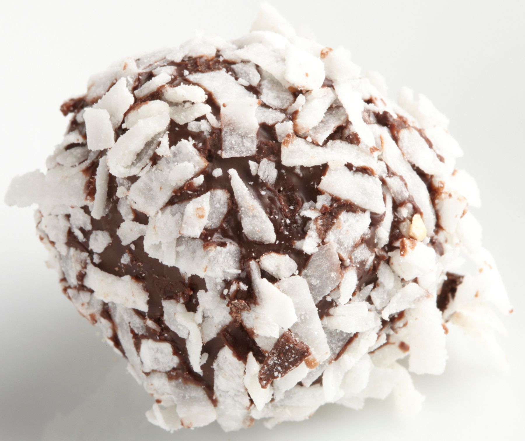 Dark chocolate truffle made with Malibu Rum for a fun, adult coconut taste.