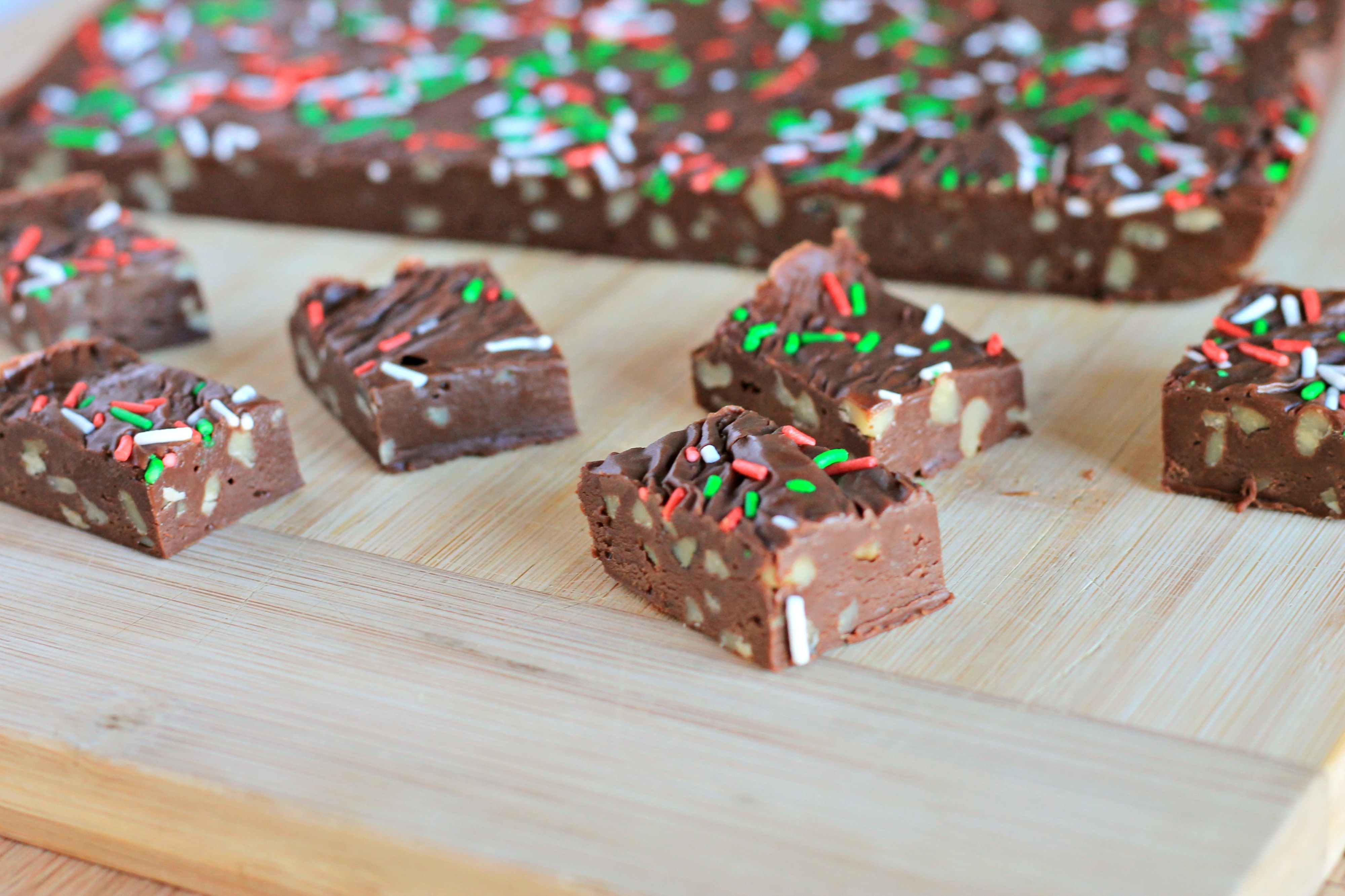 This Chocolate Walnut Fudge is so easy to make. Full of creamy chocolate and chunks of walnuts it is a perfect make-ahead treat for your Holiday guests!
