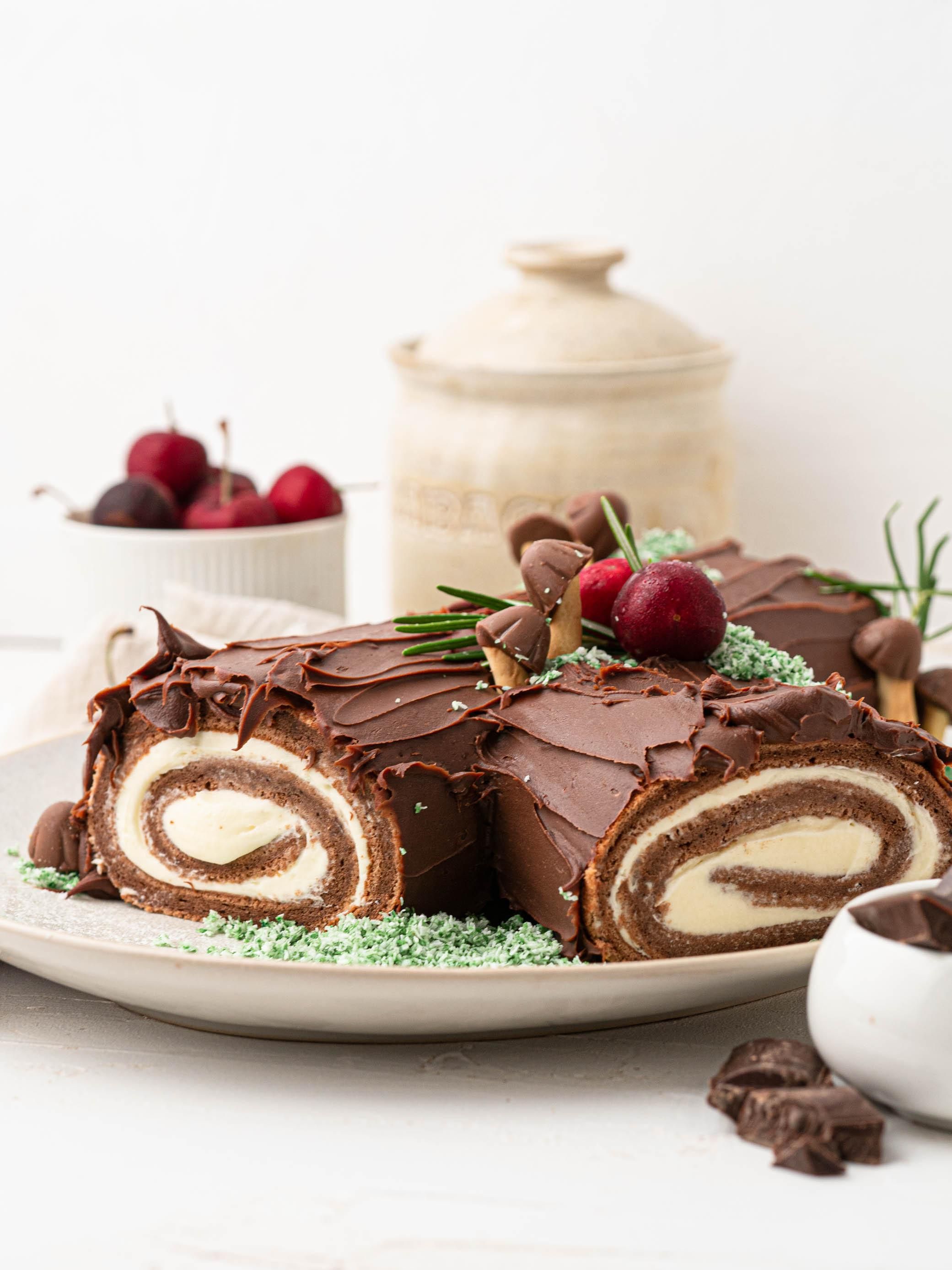 Chocolate Yule Log zhangcatherineJanuary 04, 2022 28 https://zhangcatherine.com/yule-log/Soft and fluffy chocolate sponge cake filled with light vanilla whipped cream and covered in rich chocolate ganache for the perfect chocolate yule log.Full recipe here: https://zhangcatherine.com/yule-log/See the full directions on my site