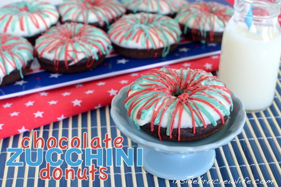 Chocolate zucchini donuts with a fun chocolate coating...can be made in different colors for different holidays.