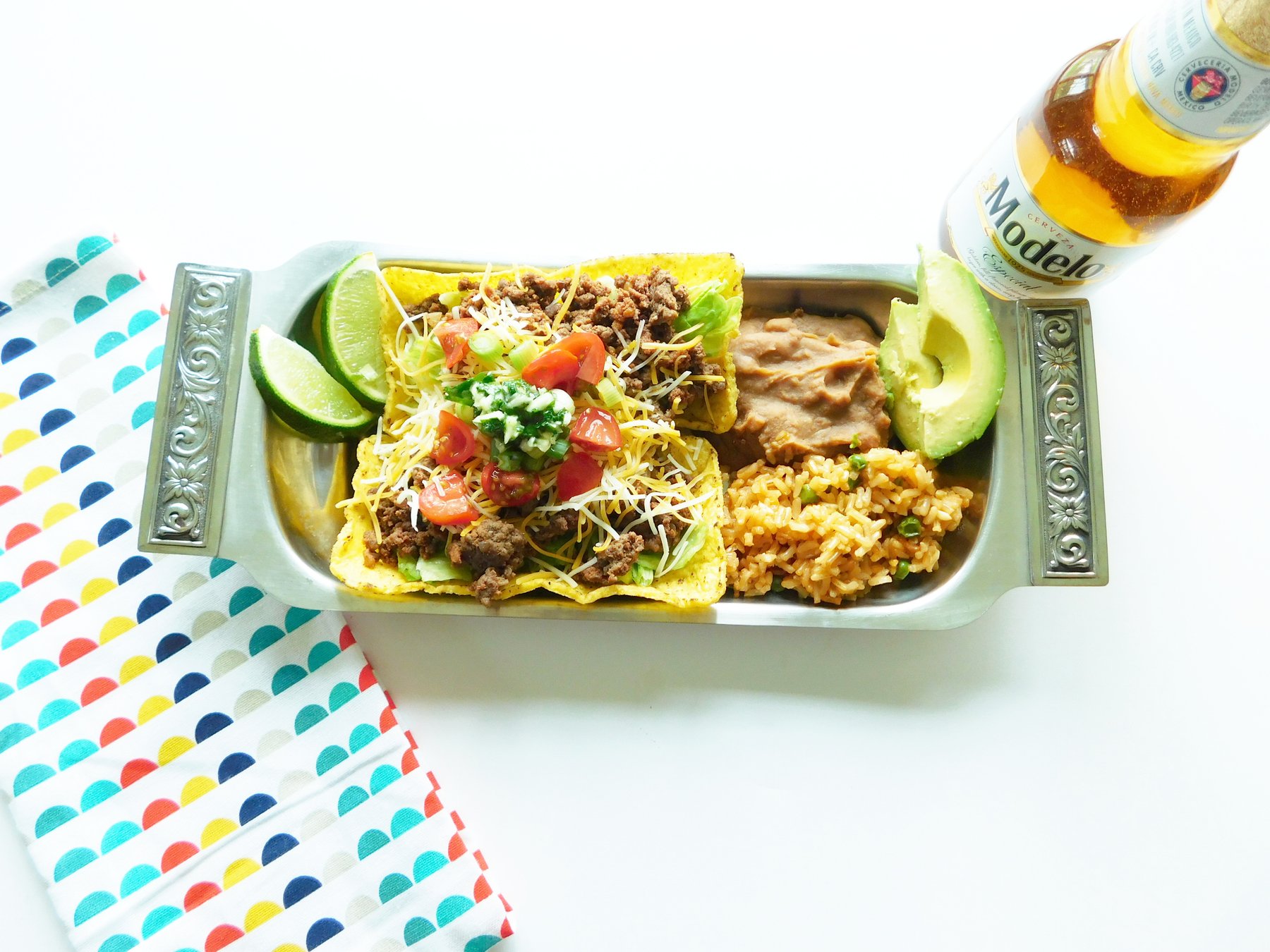 Beef & spicy chorizo tucked into taco flats then layered with lettuce, tomatoes, green onions and cheese. Top with some delicious Lime-Cilantro Dressing for an extra kick. Fiesta time!