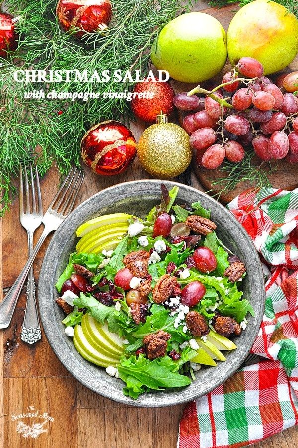 Full of beautiful flavors and textures from pomegranate, red grapes, candied pecans, pears, and cheese, this Christmas Salad with Champagne Vinaigrette is an easy, festive recipe for your holiday table!