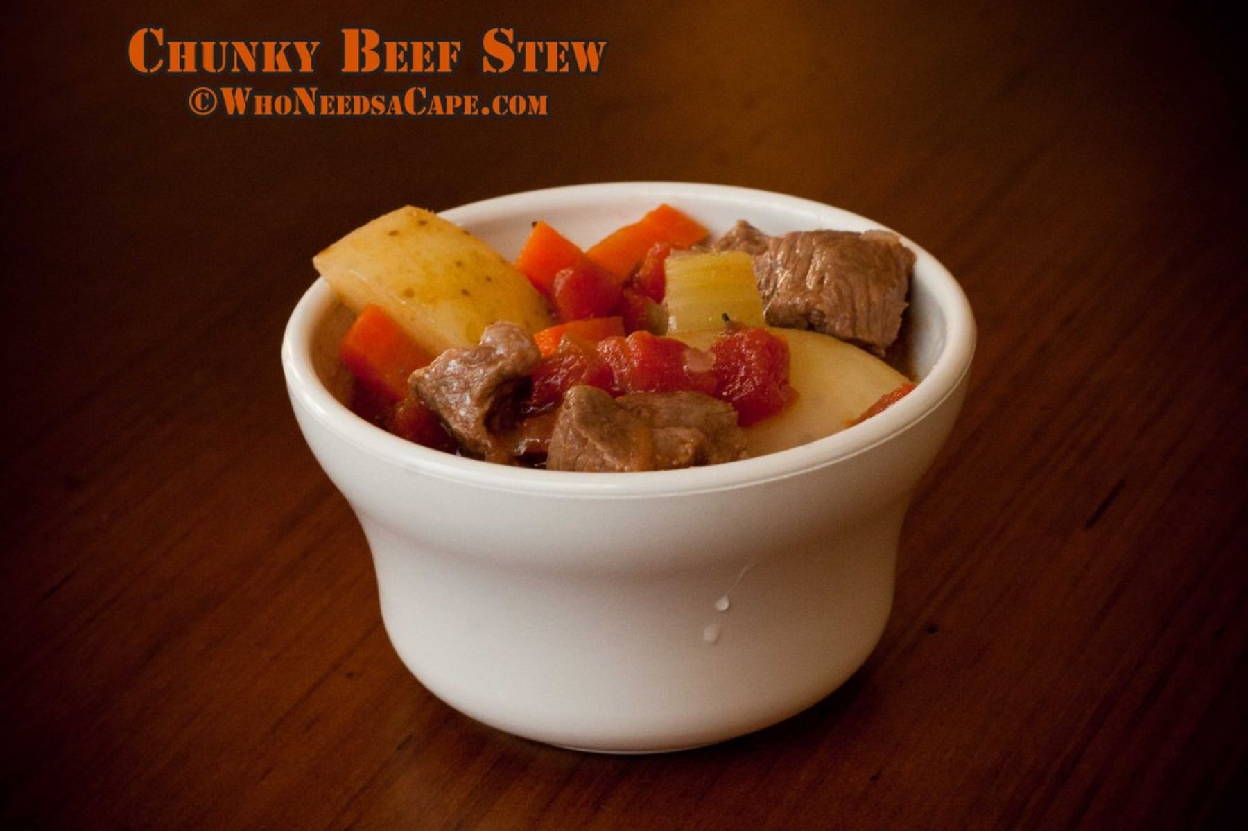 I would consider this tomato-based stew a comfort food. Even though it was mid-summer, a nice stew sounded so good. Another bonus is that this is a slow cooker recipe, so no need to have a hot pot of bubbling stew on the stove. You can make it earlier on in the day or cook from frozen like we did in our 40 Slow Cooker Meals in 4 hours post.