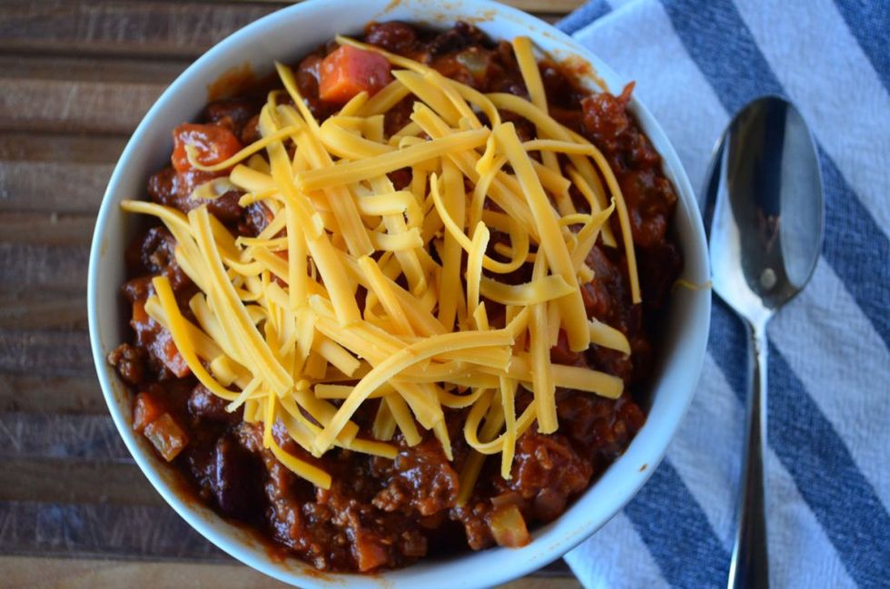 Make sure you top off a bowl of this hearty chili with a big handful of cheddar cheese.