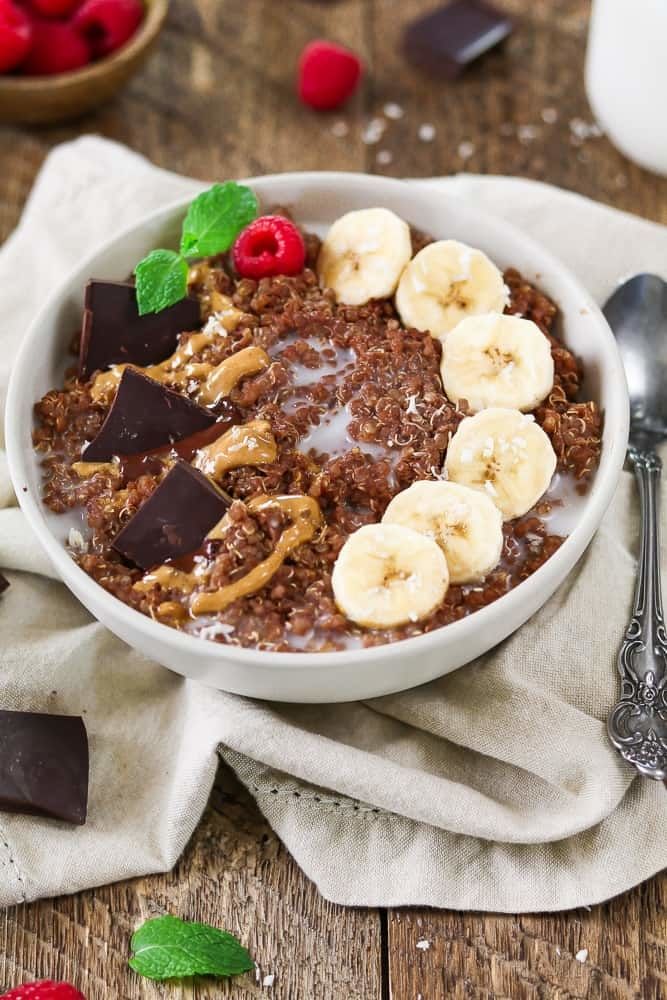 Liven up your morning with this Chunky Monkey Breakfast Quinoa Bowl. The combination of creamy peanut butter, sweet bananas, & rich dark chocolate will send your taste buds into overdrive. Oh, yeah, it's super nutritious, too!