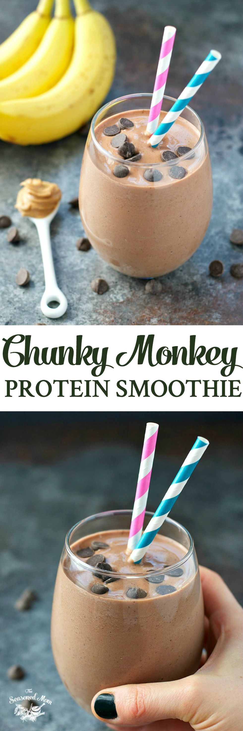 A wholesome, high protein breakfast is less than 5 minutes away with this Chunky Monkey Protein Smoothie! Dairy-free, gluten-free, vegan, and loaded with chocolate, peanut butter, and banana goodness!