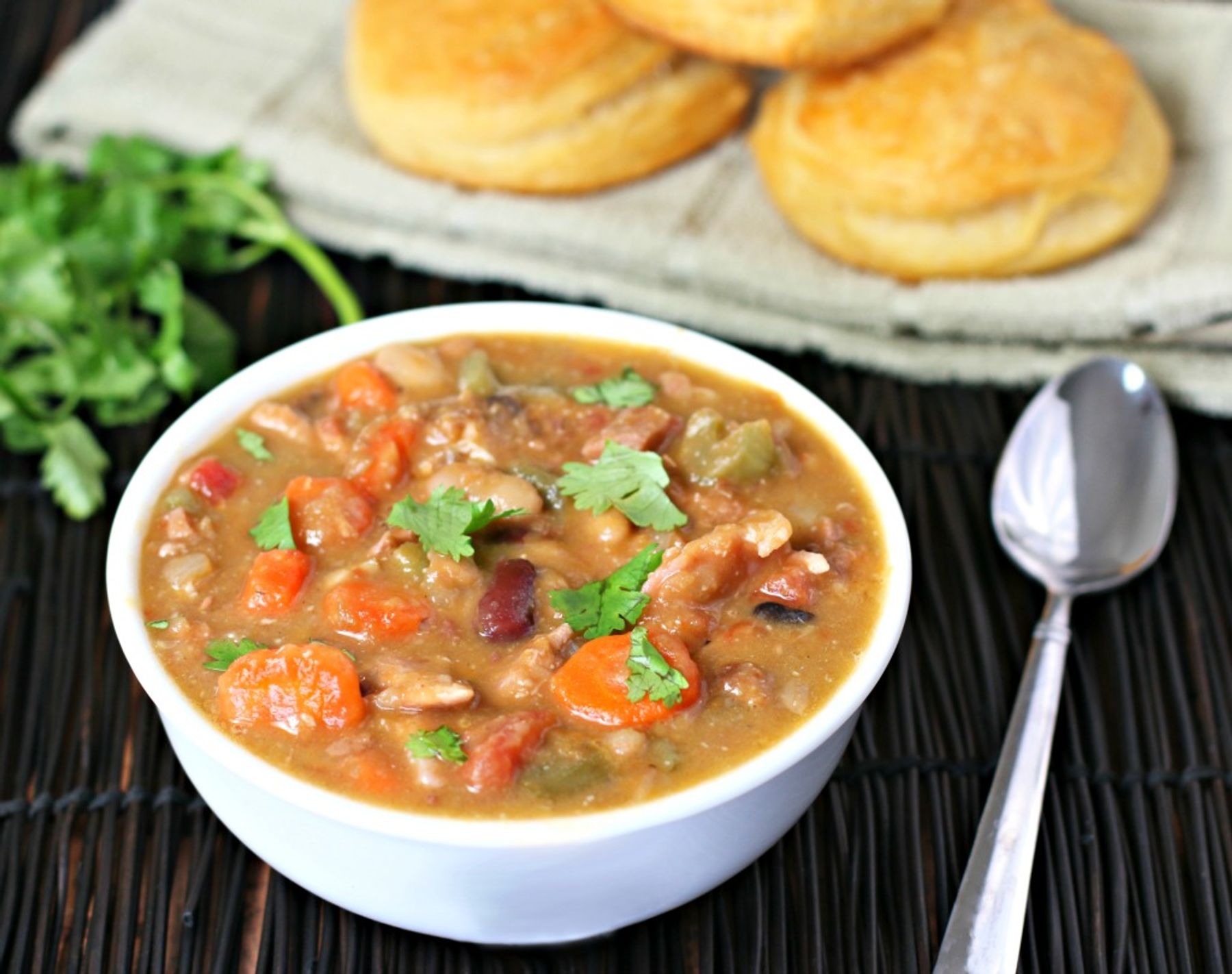 Chunky Turkey 15 Bean Soup is a cozy, delicious, easy and satisfying way to enjoy tons of veggies and chunks of smoked turkey! Your family will love it.