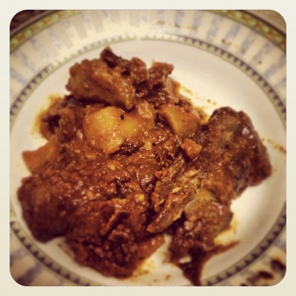 This is an ancient Jewish dish I simplified because I'm lazy. It is just incredible and the secret ingredient is heat: I let the pot 18 hours in a very low heat electric grill or in the minimum temperature in the oven. Of course you can use your slow cooker or crockpot in two cycles of 8 hours each on slow heat. The picture doesn't show the eggs when done because Mijael family like it so much they didn't give Mijael time to take the picture before eating them with salt, pepper and lemon juice.