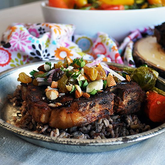 Thick cut smoky braised pork chops coated in a sweet and spicy apple cider glaze, served over wild rice and topped with agrodolce, a sweet and sour Italian condiment that adds a shock of flavor to everything it touches.