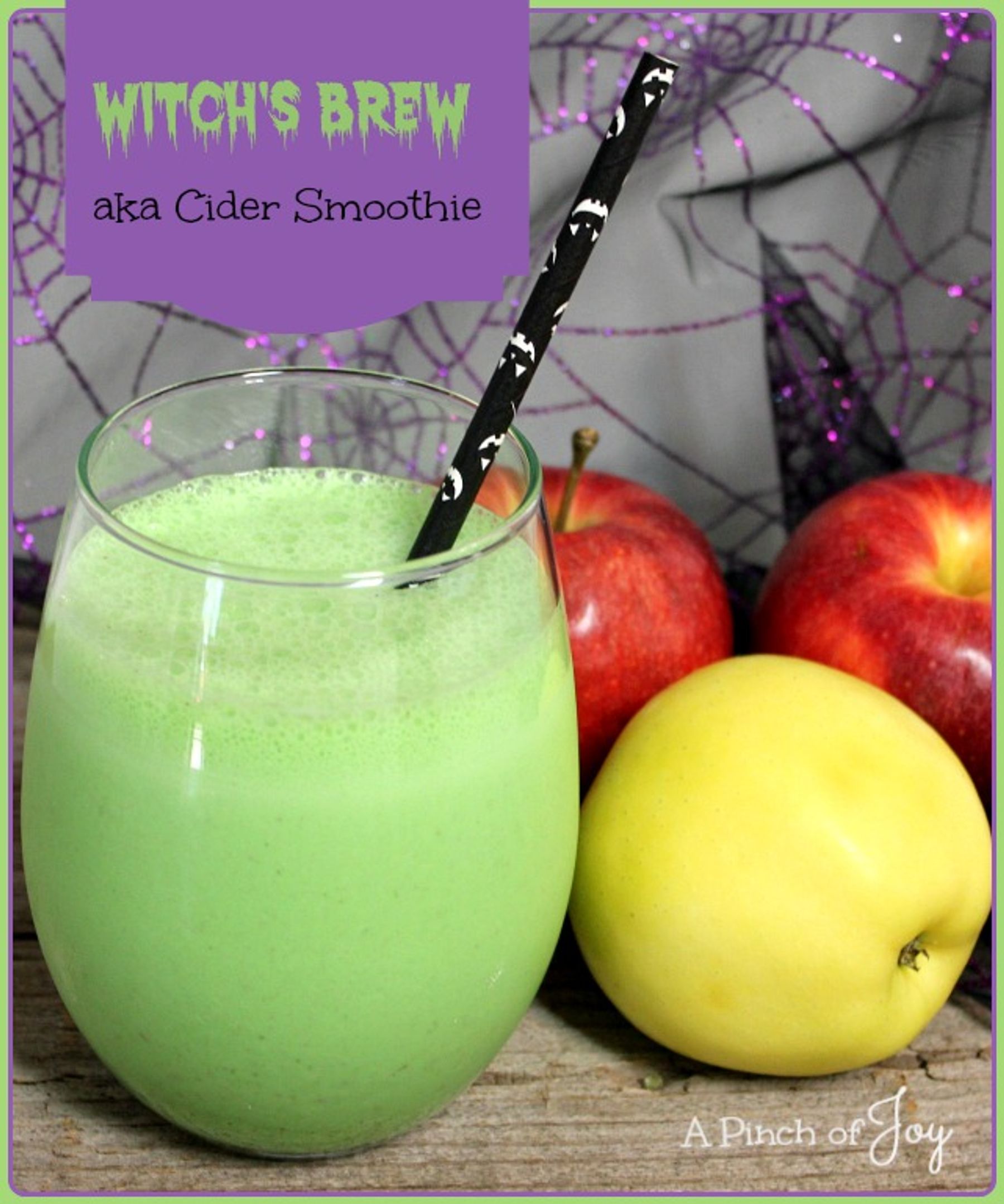 Cider smoothie tastes like apple pie and ice cream through a straw – perfect autumn goodness. Color it green -- instant Halloween witch\\\'s brew!