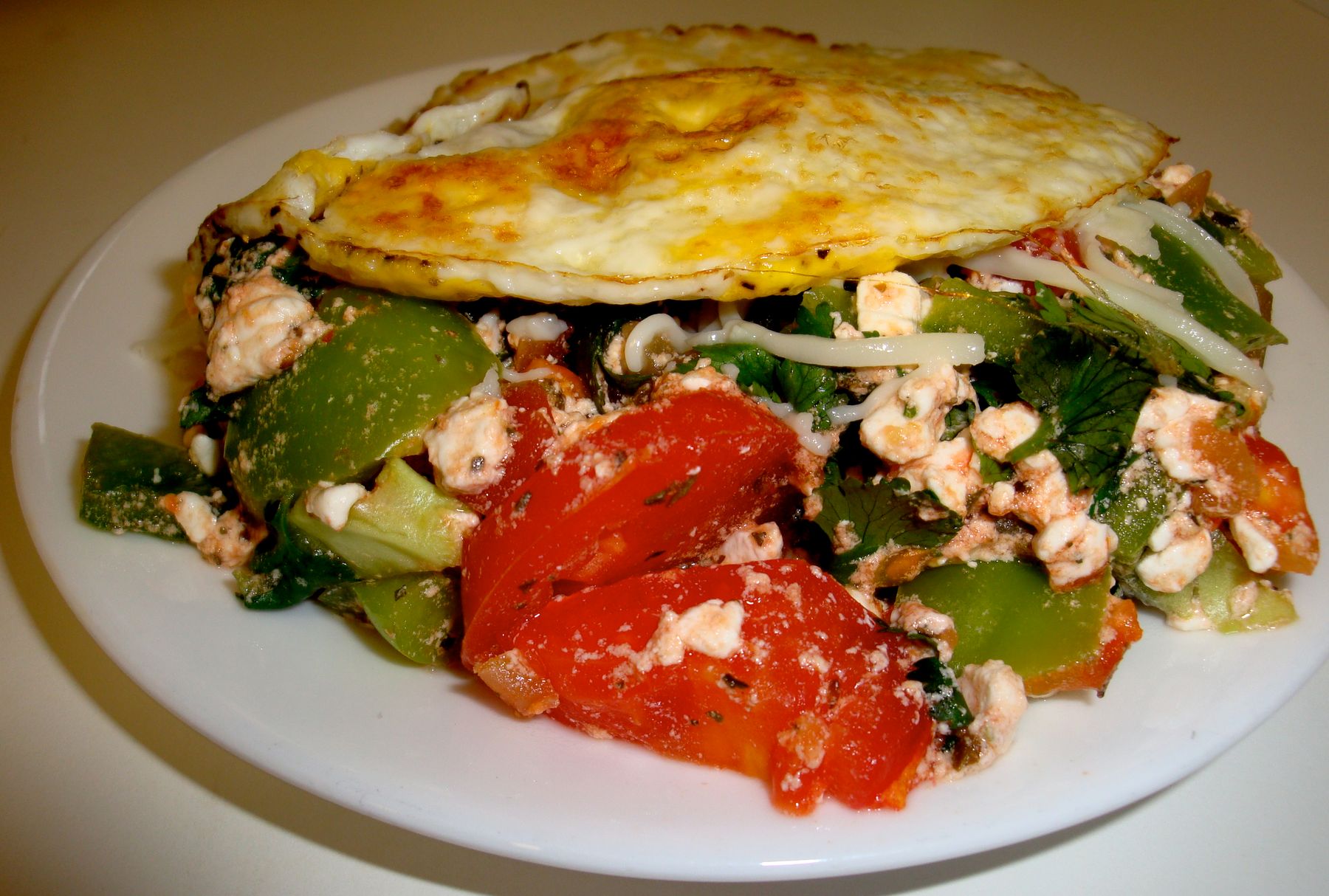 6. Complete the final layer of your "Broach" by flipping the fried egg onto the veggie mixture.
