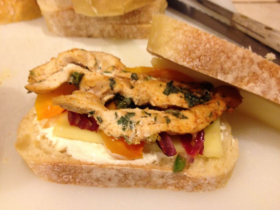 Heat a pan or Panini maker until it’s good and hot. Make your sandwich as follows: