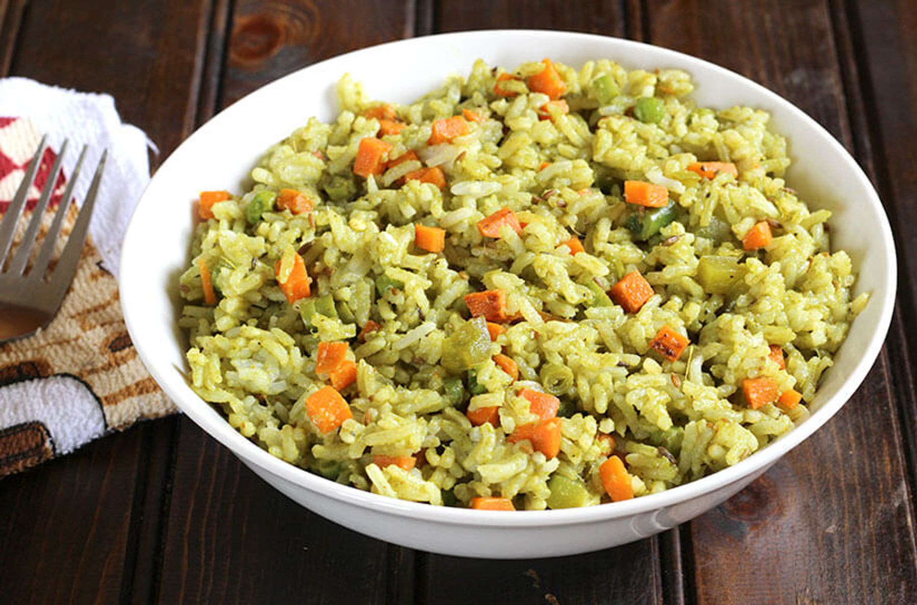 Coriander Rice or Cilantro Rice is a easy to make vegan rice recipe prepared using aromatic spices and vegetables of your choice in less than 30 minutes.