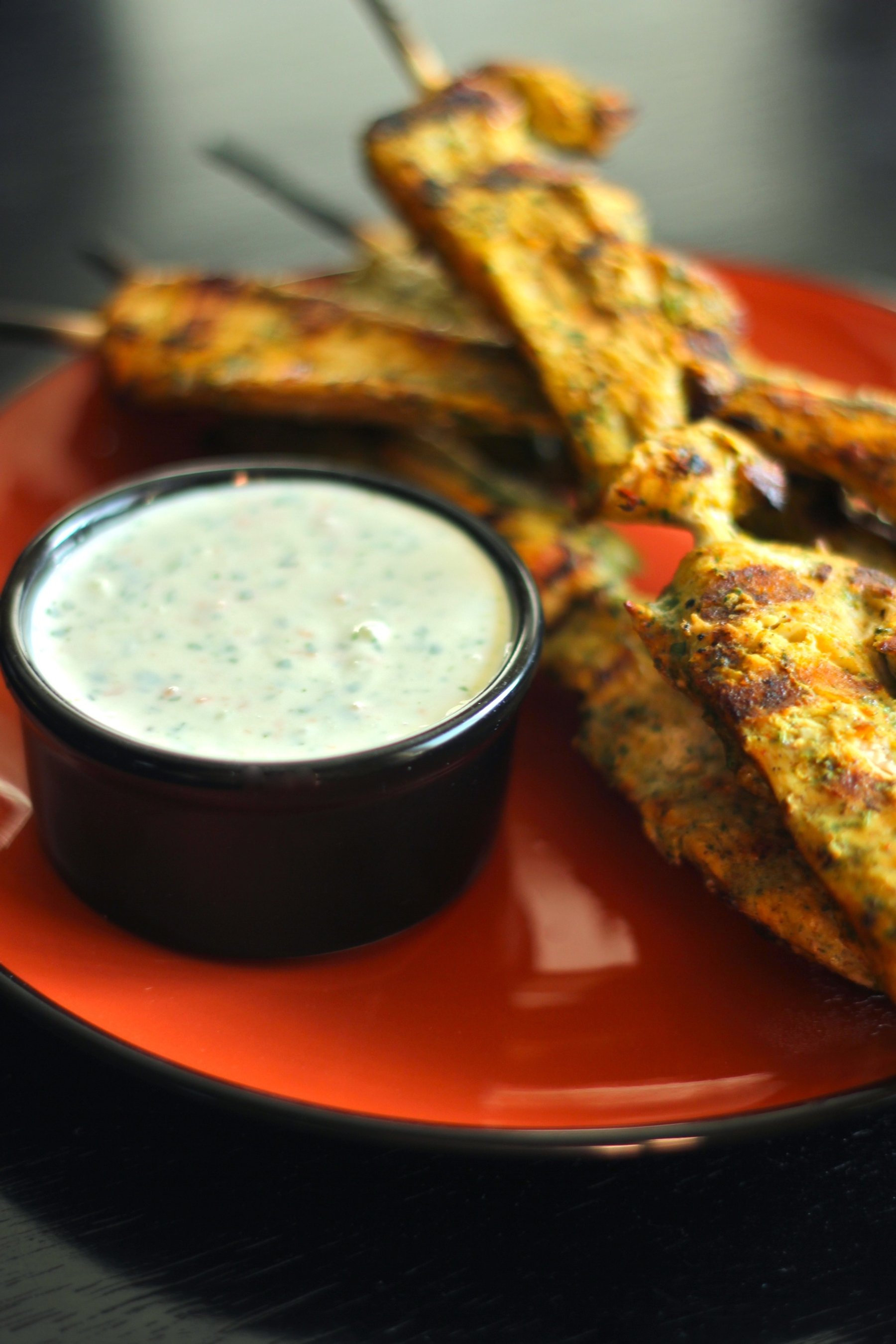 Cilantro Thai Chicken Skewers with Cucumber Yogurt Dipping Sauce