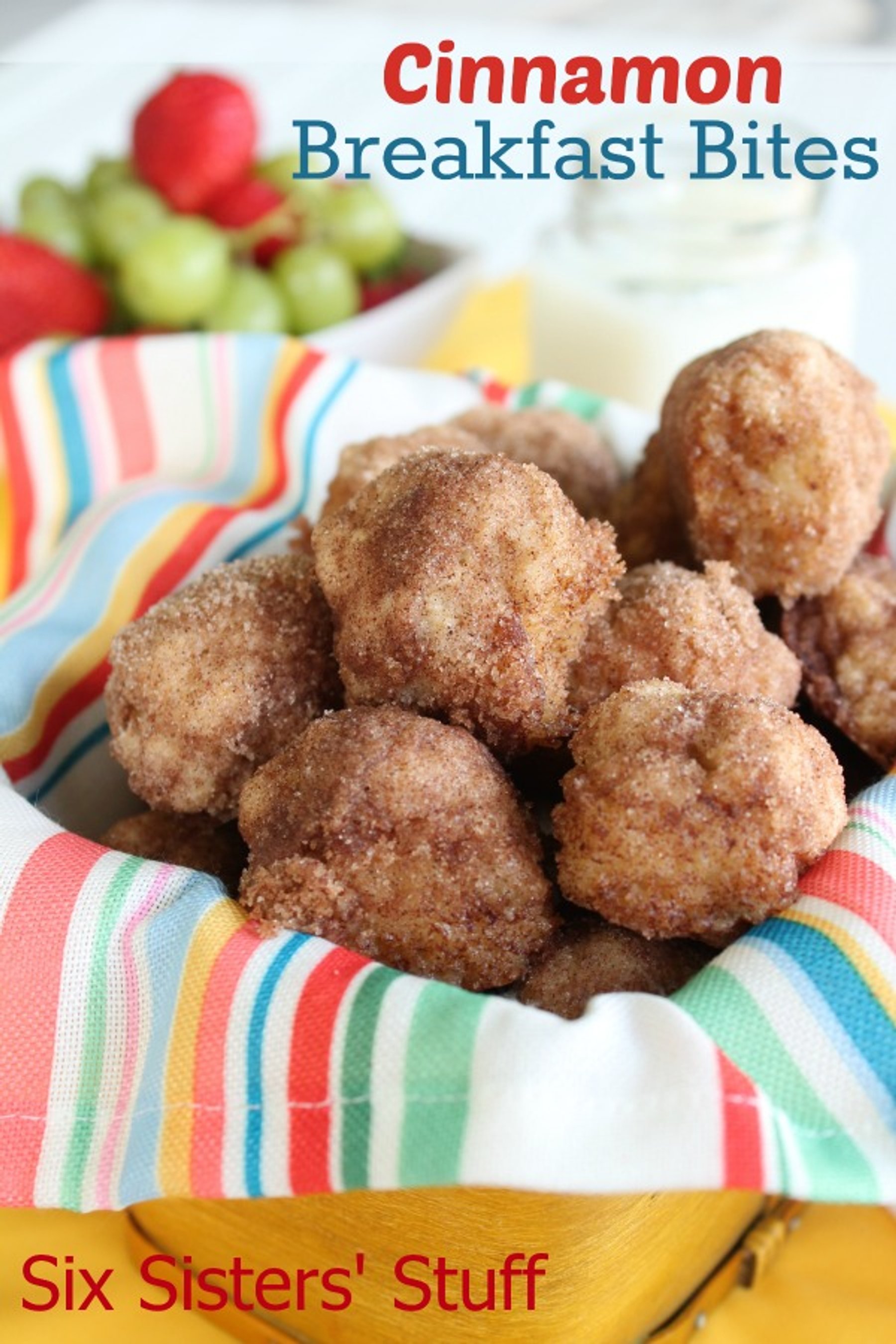These breakfast bites taste a lot like a cinnamon sugar doughnut hole, but so much healthier since they are baked! And just a little secret.....they are sooooo good served warm right out of the oven! We love them with a big glass of milk and some fruit!