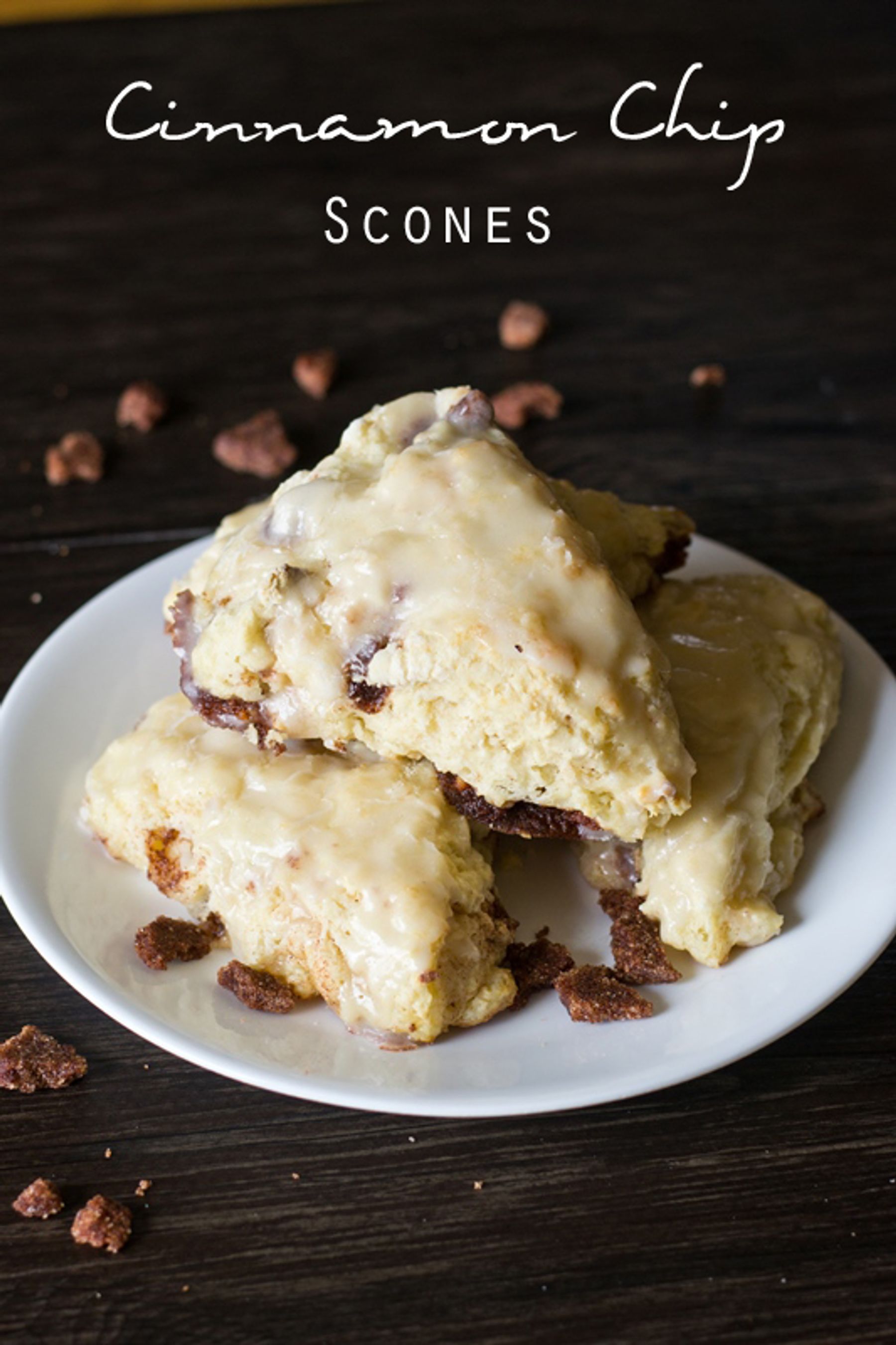 Cinnamon Chip Scones with homemade cinnamon chips! They’re soft and cinnamony with a delicious glaze over the top.
