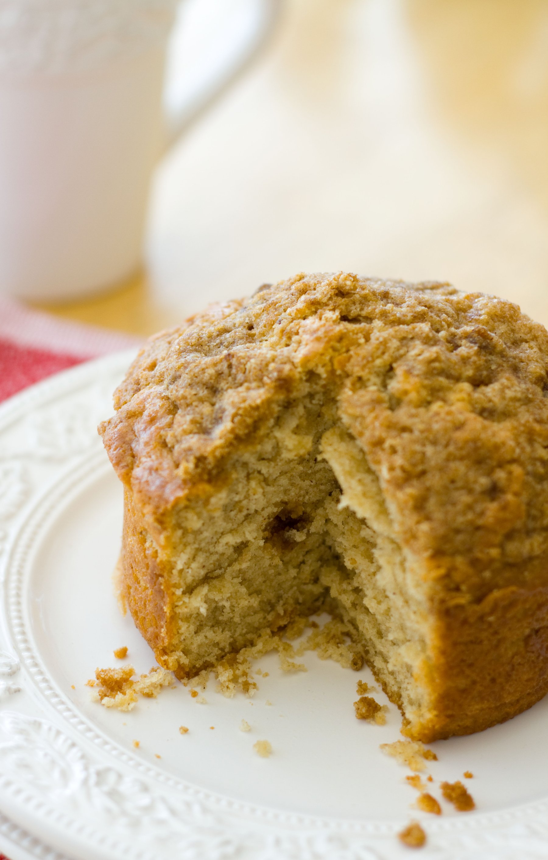 For the topping, combine the flour, cinnamon, and brown sugar. Cut in the butter and mix until it resembles coarse crumbles. Set aside.
