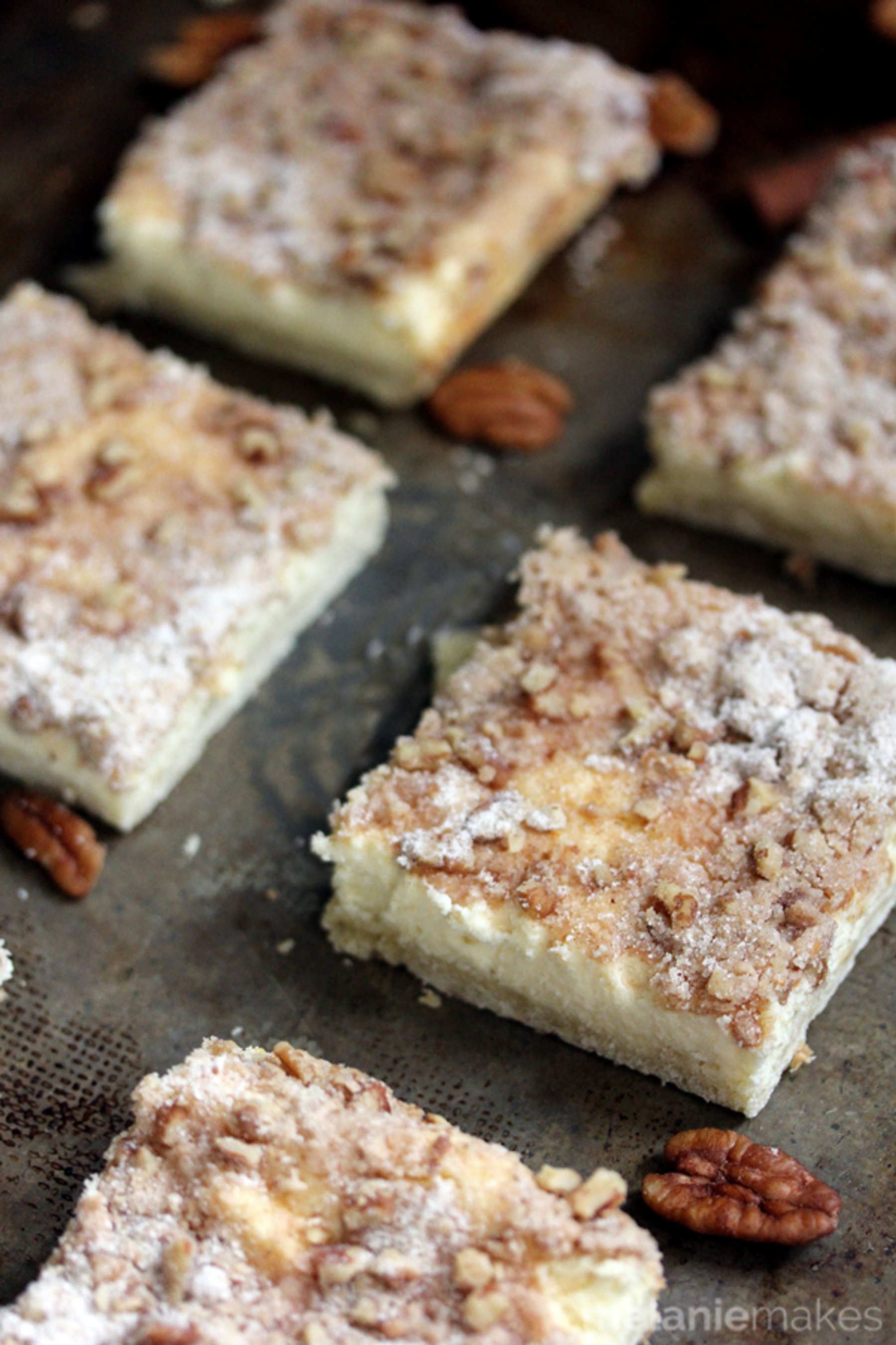 Cinnamon Pecan Streusel Cheesecake Bars