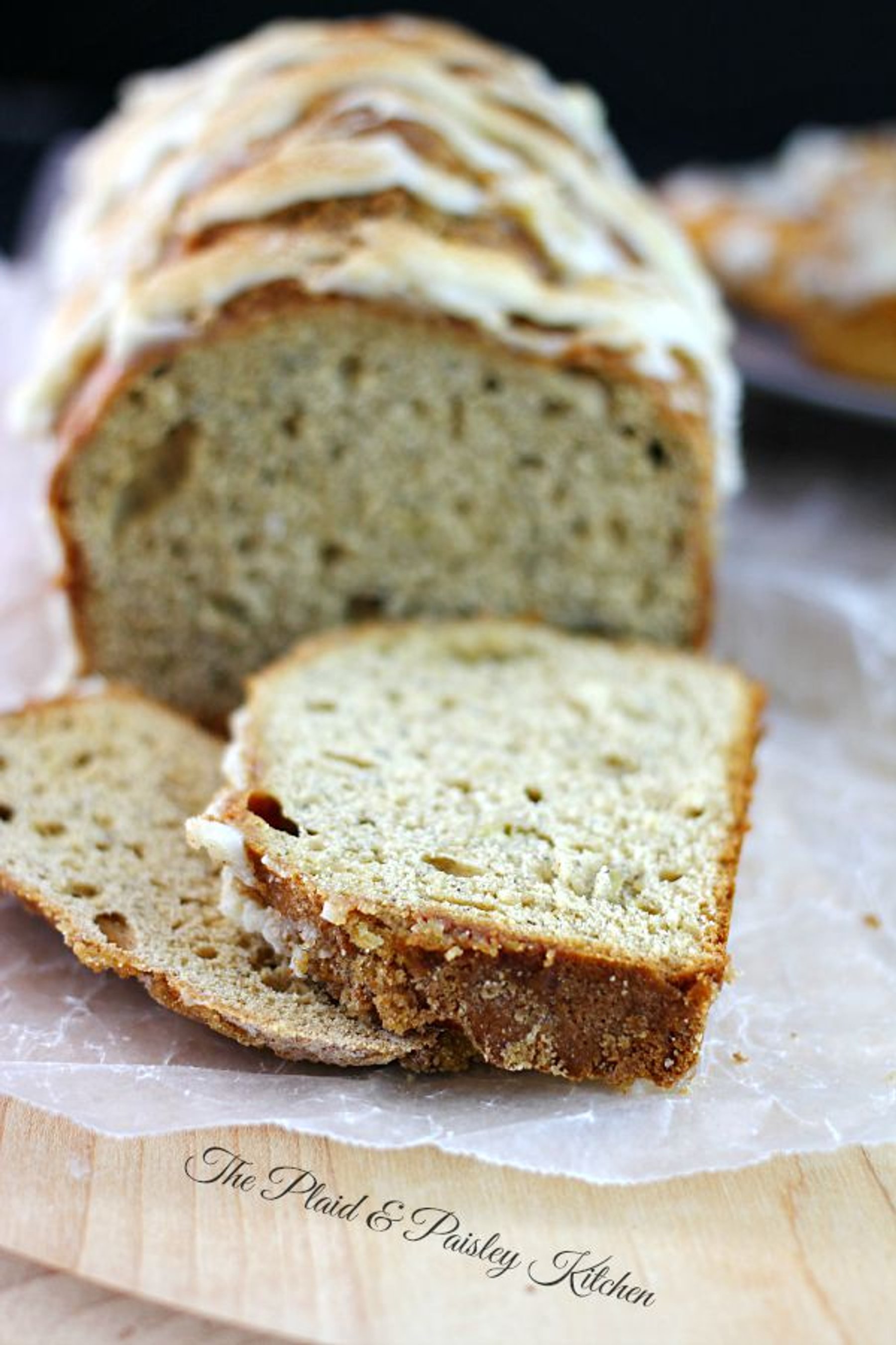 Cinnamon Roll Banana Bread ~ The Plaid & Paisley Kitchen ~ A perfect blend of both your morning Favorites! Start your day off with a treat.
