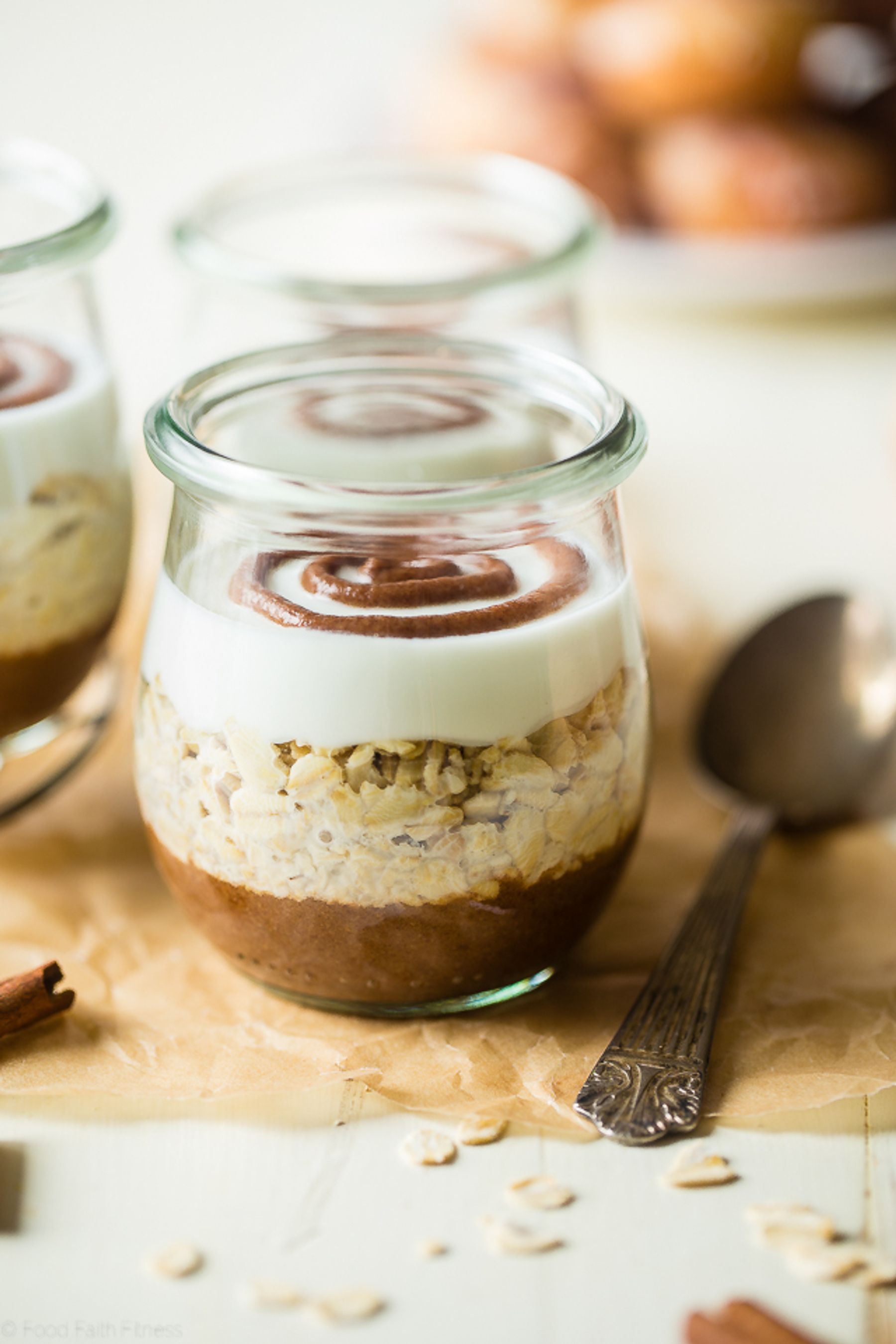 These quick and easy overnight oats are packed with protein and taste just like a gluten free cinnamon roll. Perfect for a healthy, make-ahead breakfast on busy mornings!