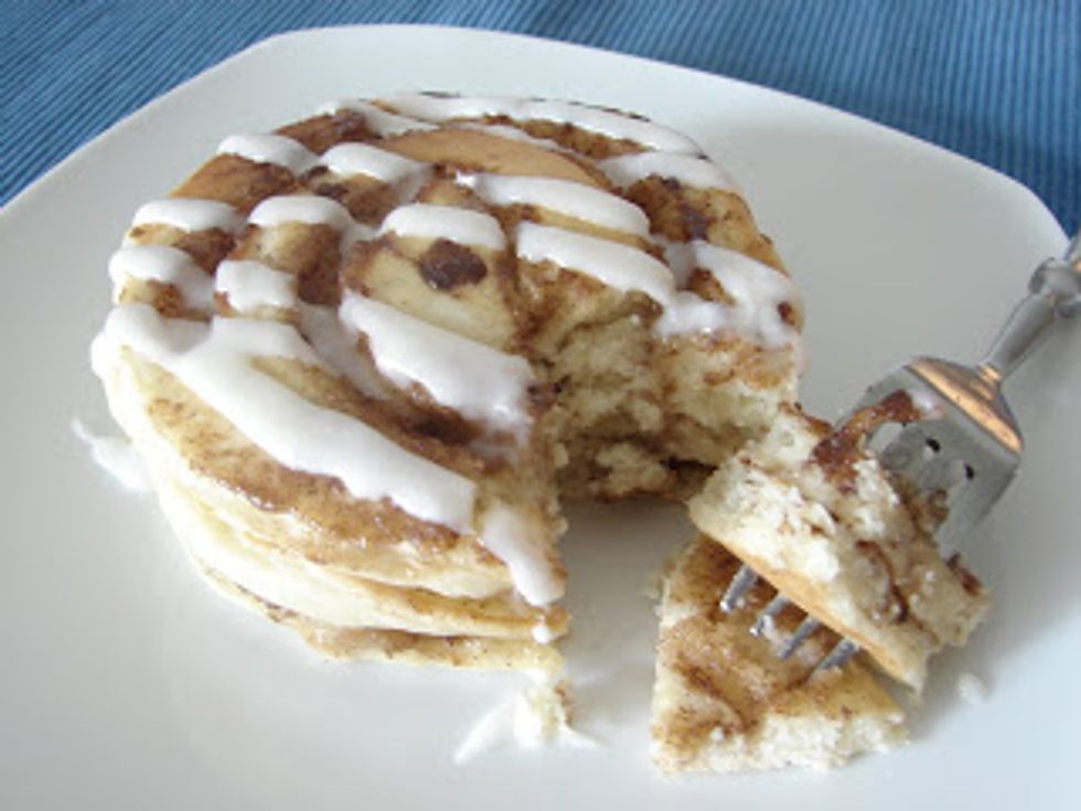 Cinnamon Roll Pancakes with Cream Cheese Glaze