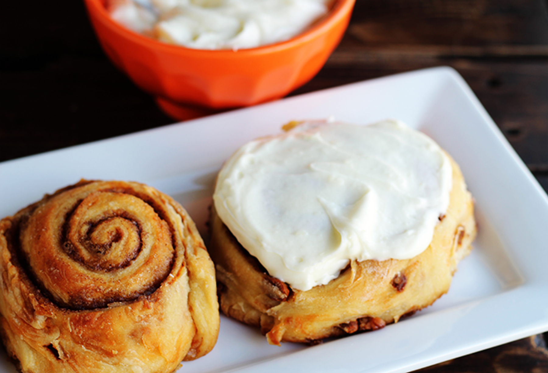 These are ginormous cinnamon rolls packed with cinnamon chips and piled high with cream cheese frosting. What a perfect breakfast!