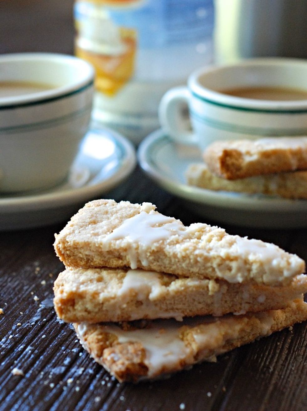Shortbread cookies with a hint of cinnamon and drizzled with a pumpkin spice glaze.