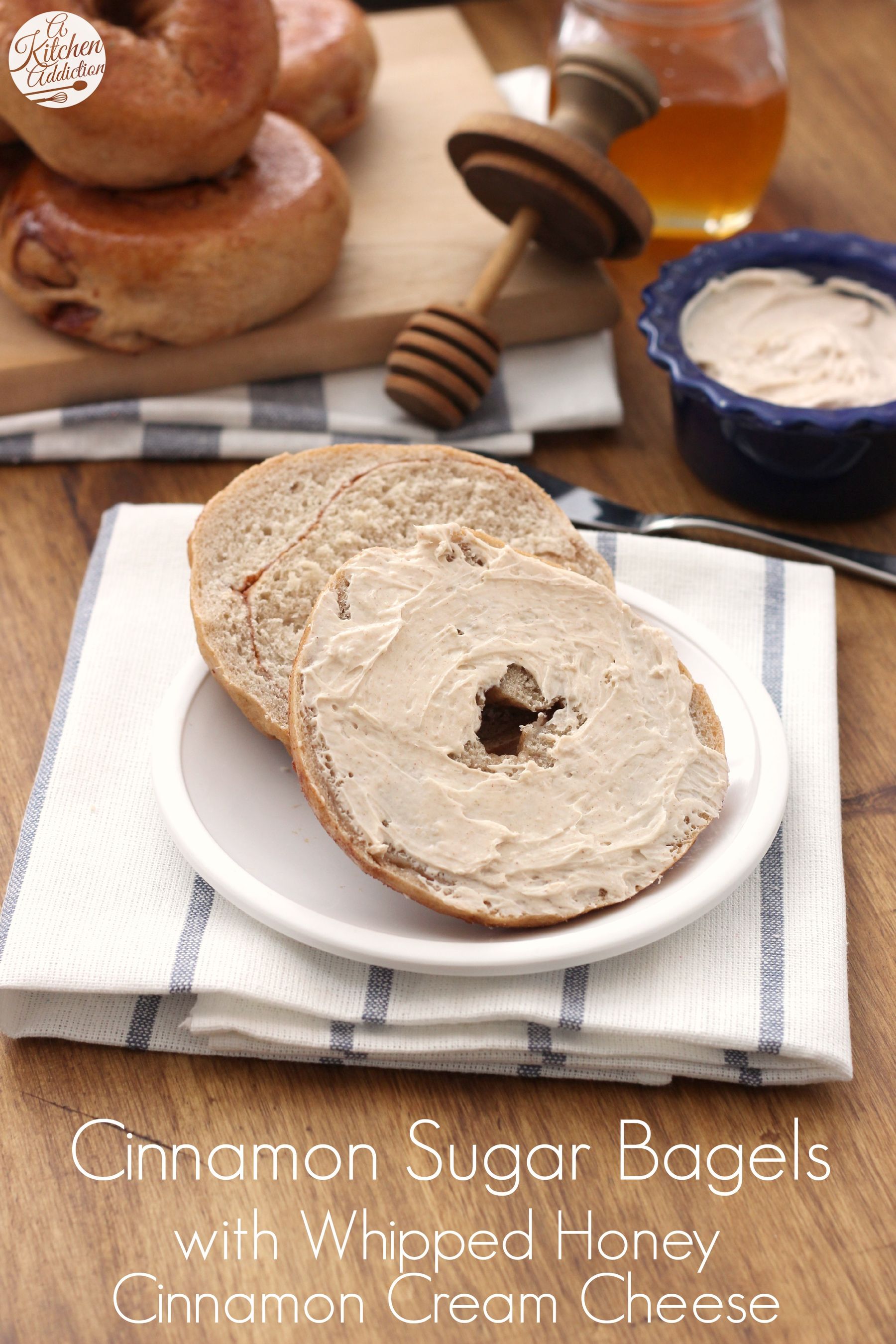 Cinnamon Sugar Bagels with Whipped Honey Cinnamon Cream Cheese