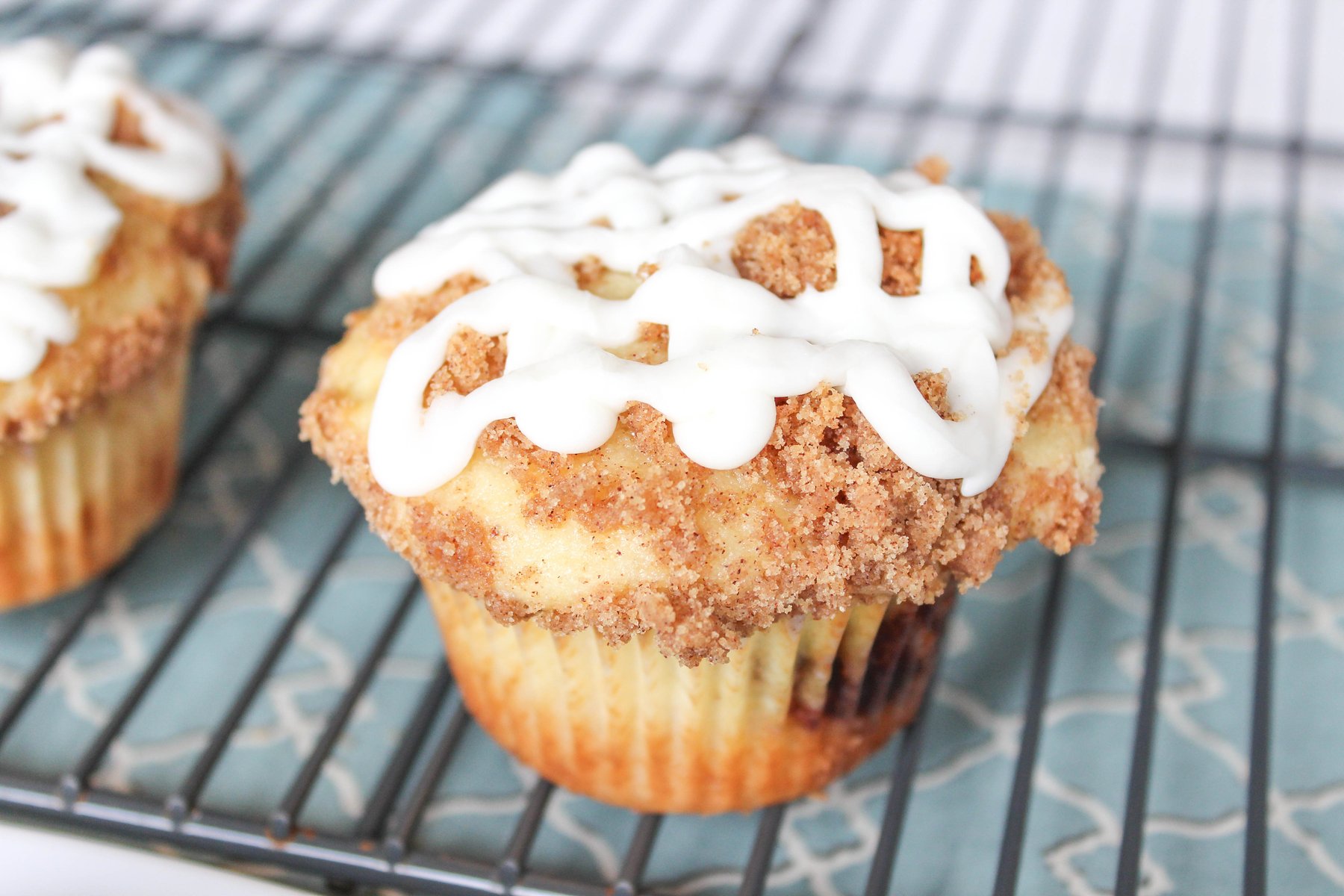 These Cinnamon Swirly Muffins are sweet and fluffy, with a ribbon of cinnamon filling swirled in the middle, topped with a buttery brown sugar crumble topping, and (if that wasn’t enough) some sugar glaze drizzled on top. SO good!