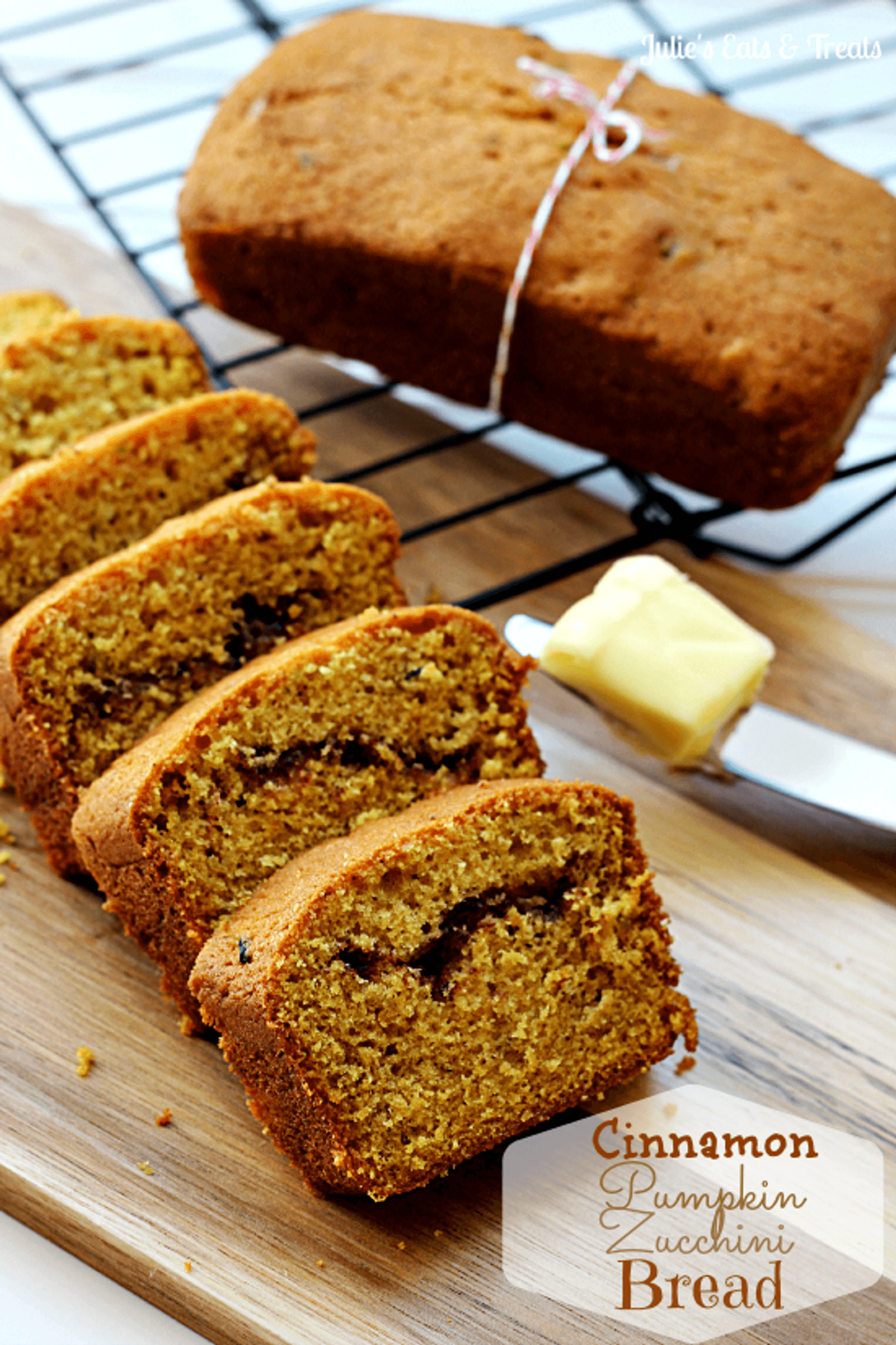 Pumpkin Zucchini Bread with a Cinnamon Swirl!